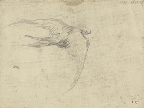 Vier gierzwaluwen en schetsen van landschappen