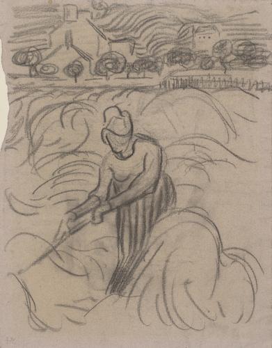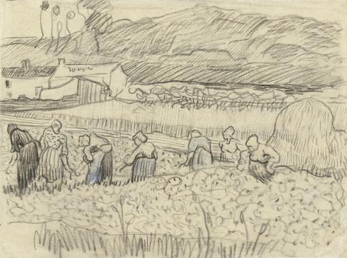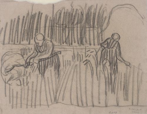 Landschap met oogstende boerinnen