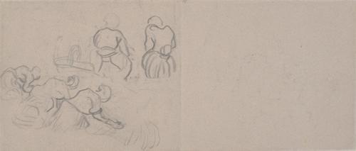 Schetsen van vrouwen die de was doen
