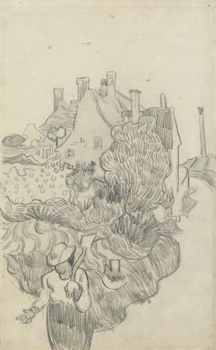 Gezicht op Saint-Rémy en schetsen van een perspectie...