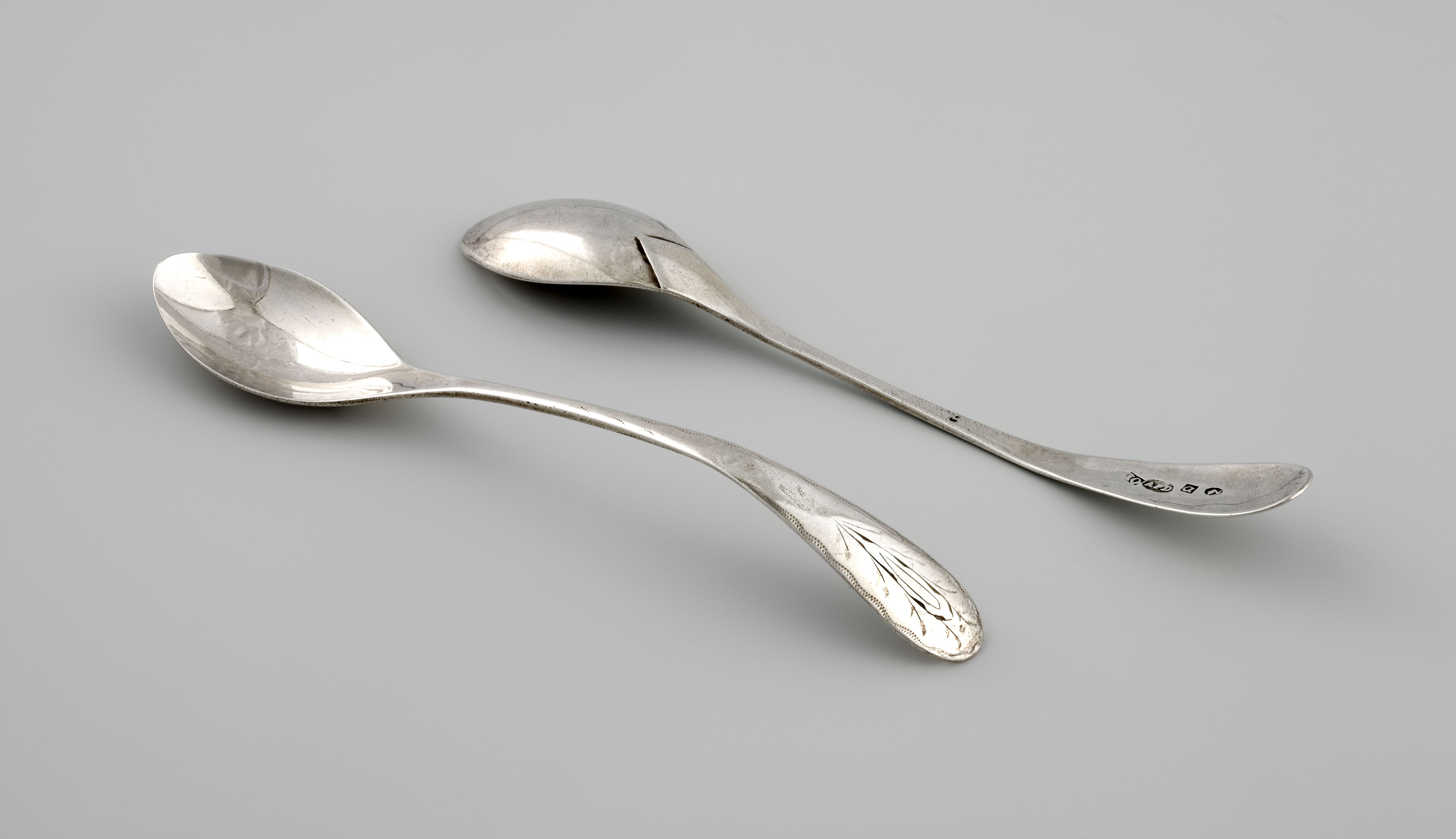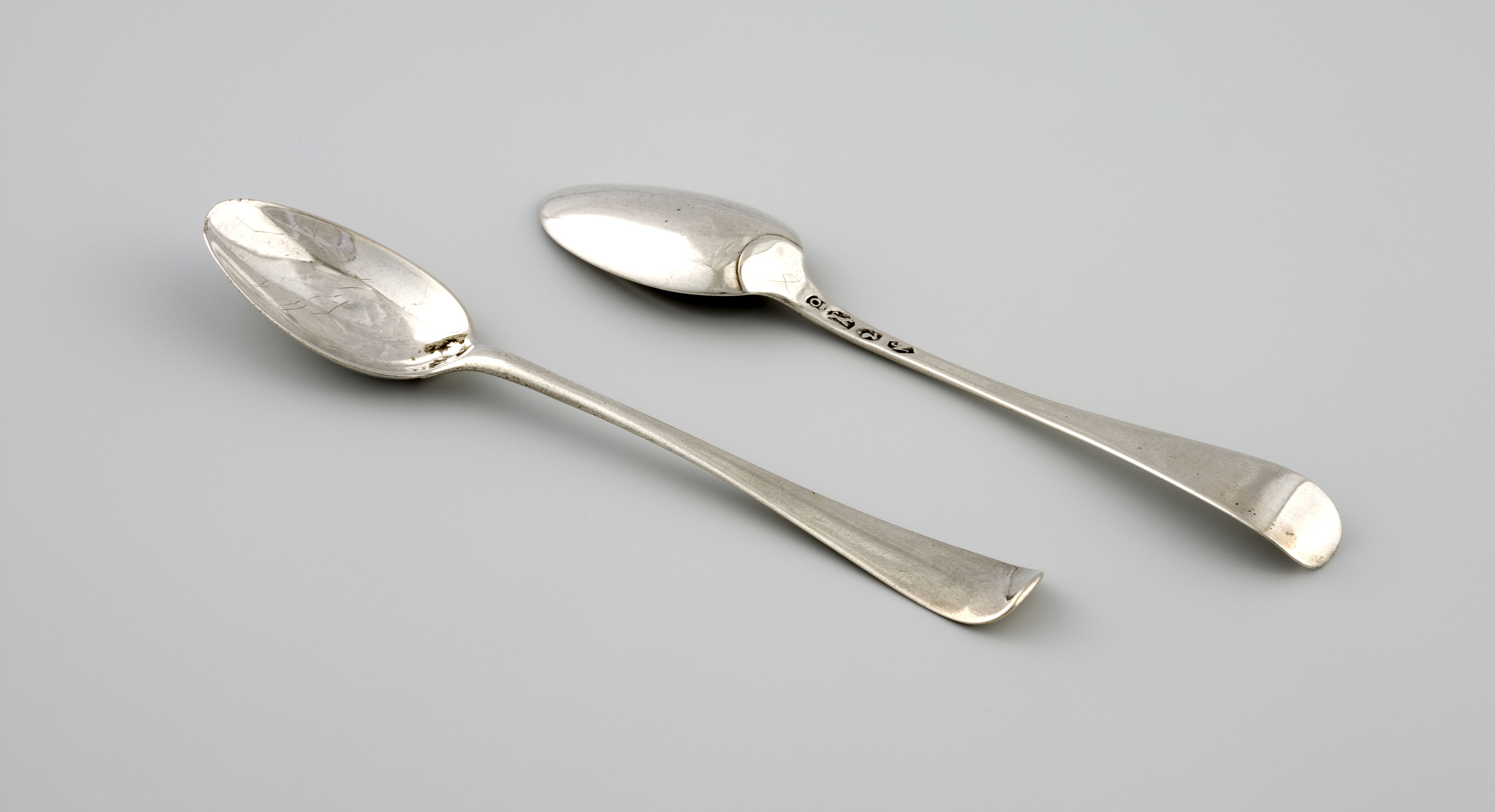Dessertlepel en -vork, de lepel met enkel Haags lof