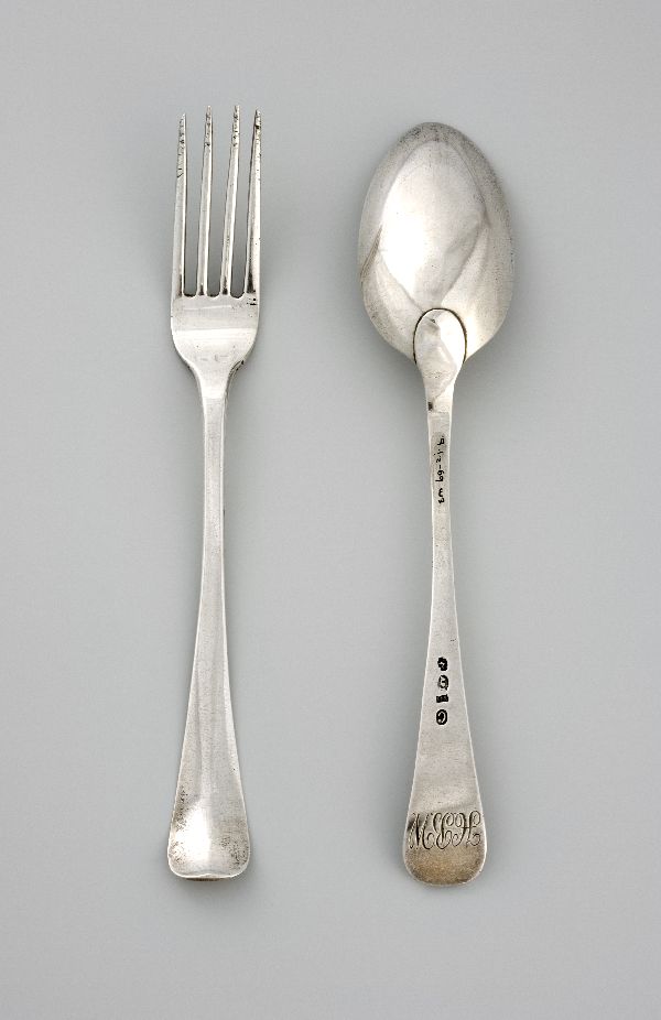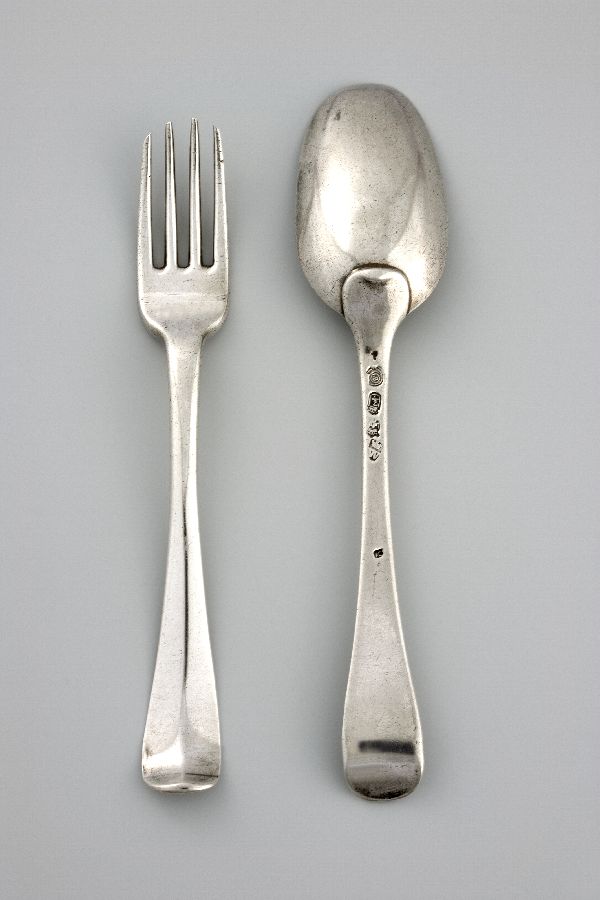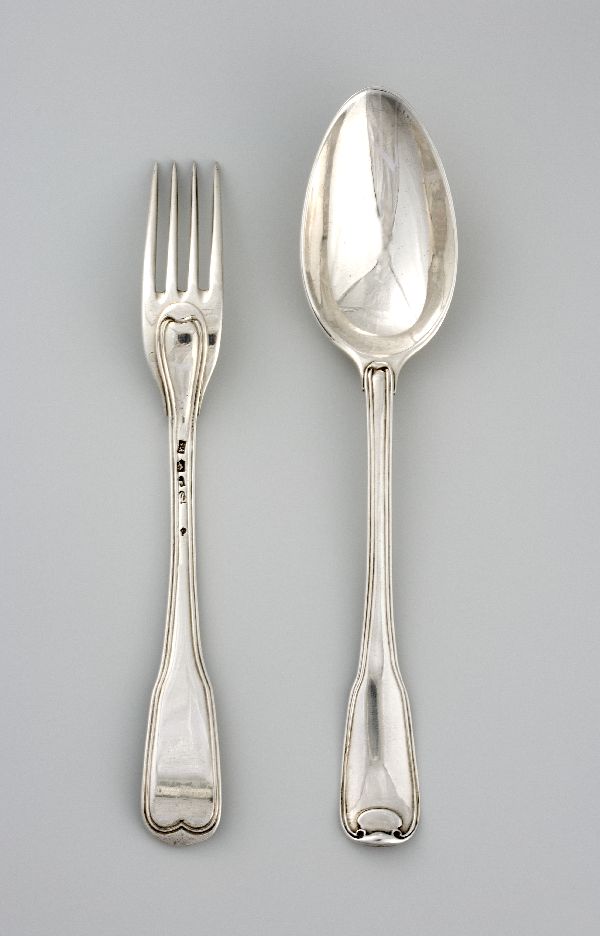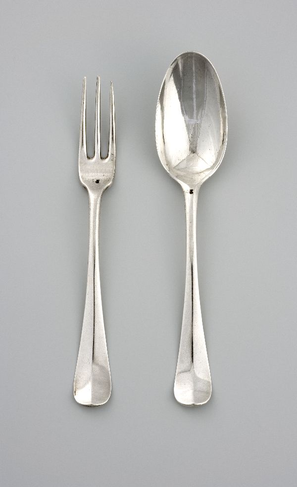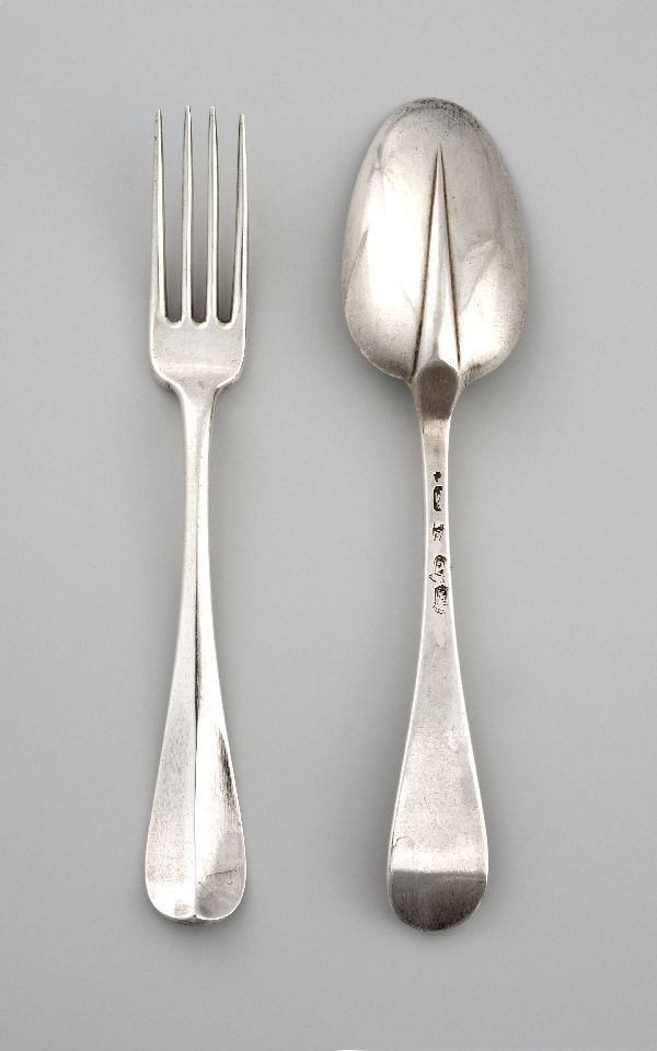 Lepel en vork, lepel met enkel Haags lof, op steel l...