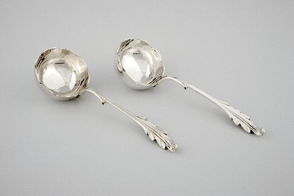 Twee sauslepels, bak met geschulpte rand, steel in d...