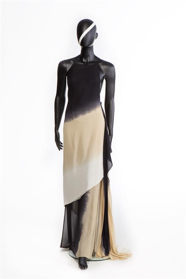 Tweedelige avondjurk van zwarte zijden crêpe in moul...