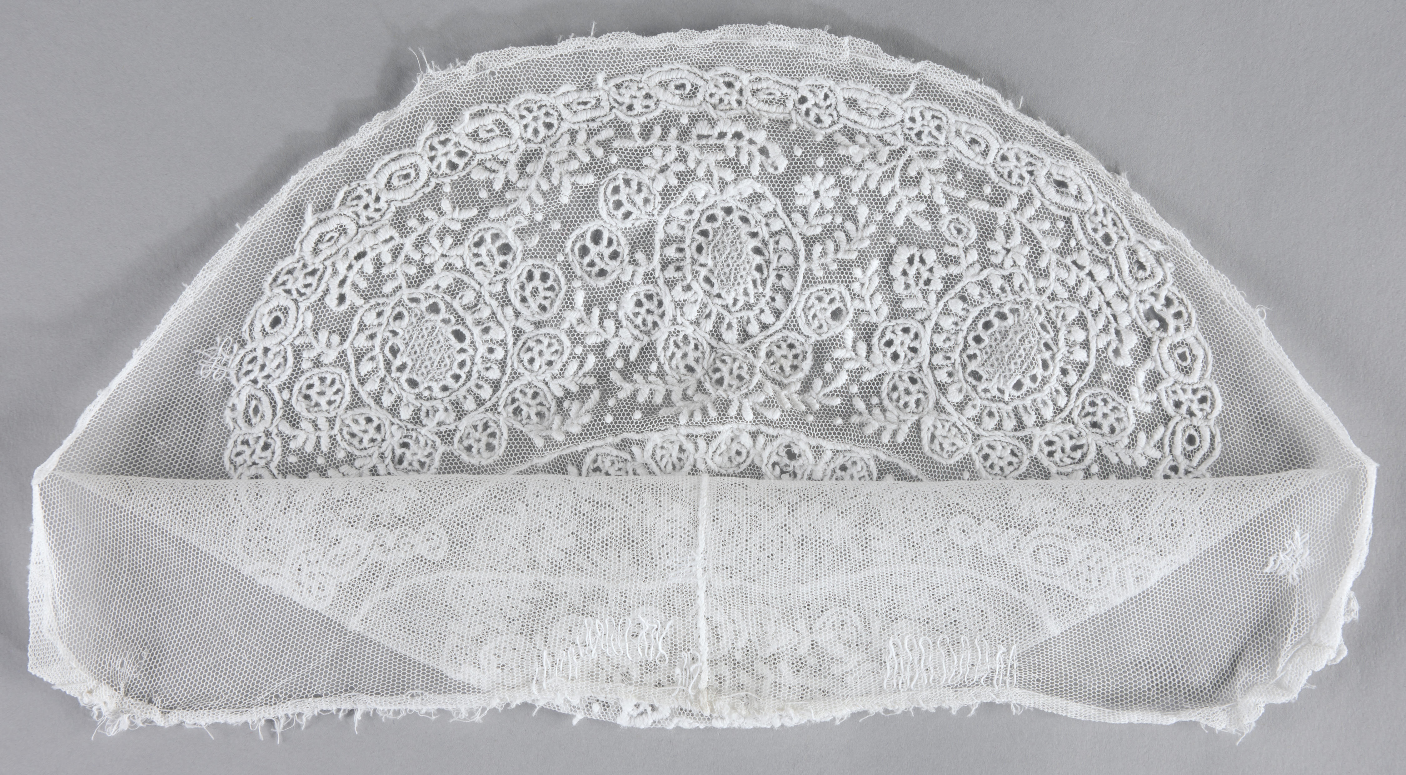 Versierde tule, afkomstig van een 'floddermuts', Mak...