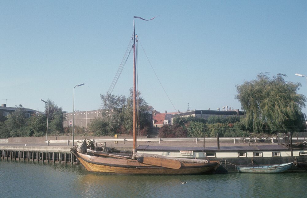 Vissershaven met vissersschip en woonboot