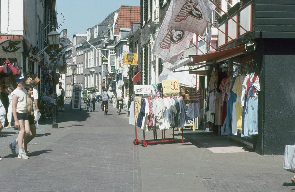 Het begin van de Bruggestraat bij de Texshop, gezien...