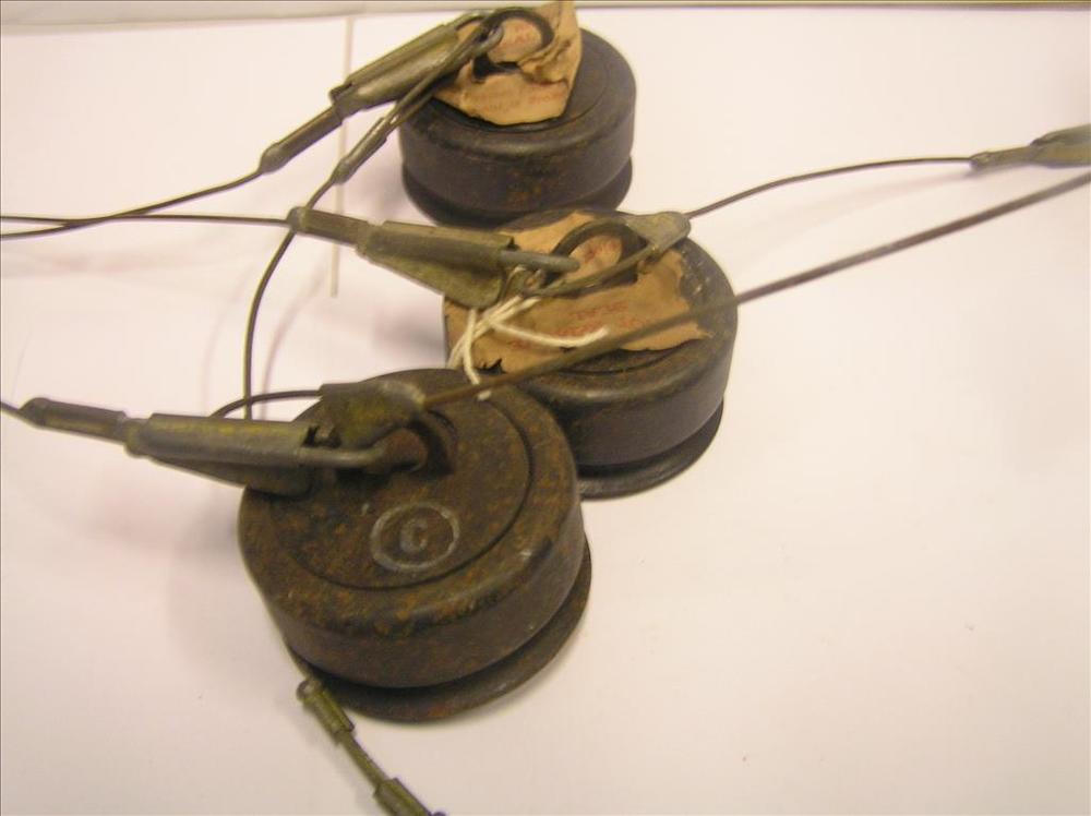 Drie doppen van 55 mm diameter verbonden met staalka...