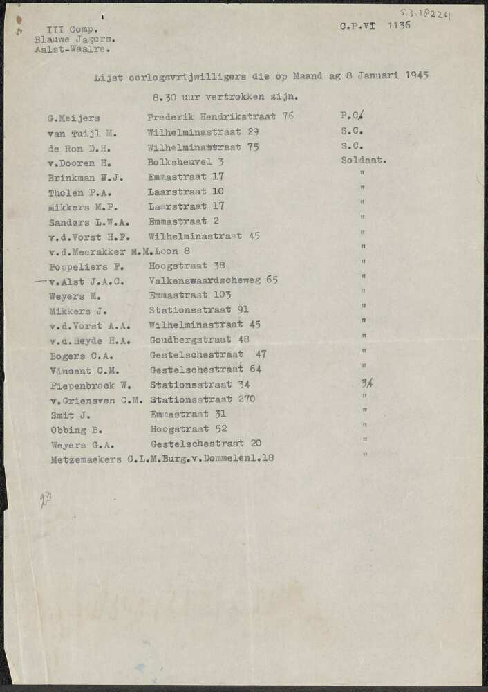 Lijst van oorlogsvrijwilligers die op maandag 8 janu...