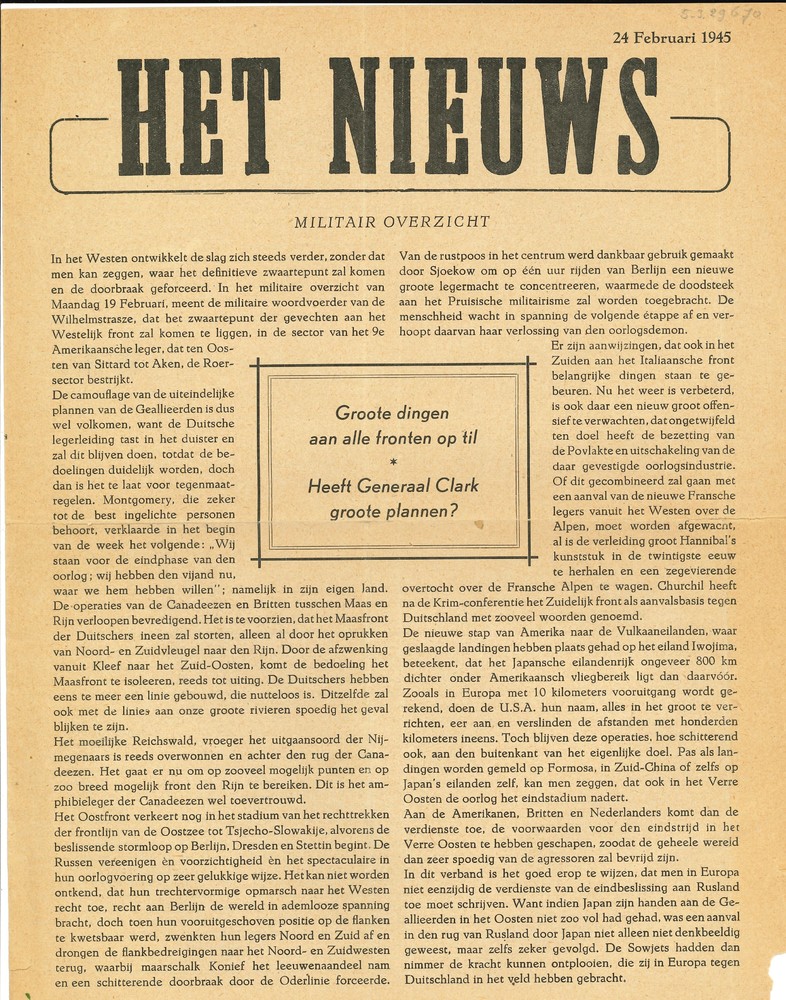 Een aantal krantenknipsels uit de oorlogsperiode 194...