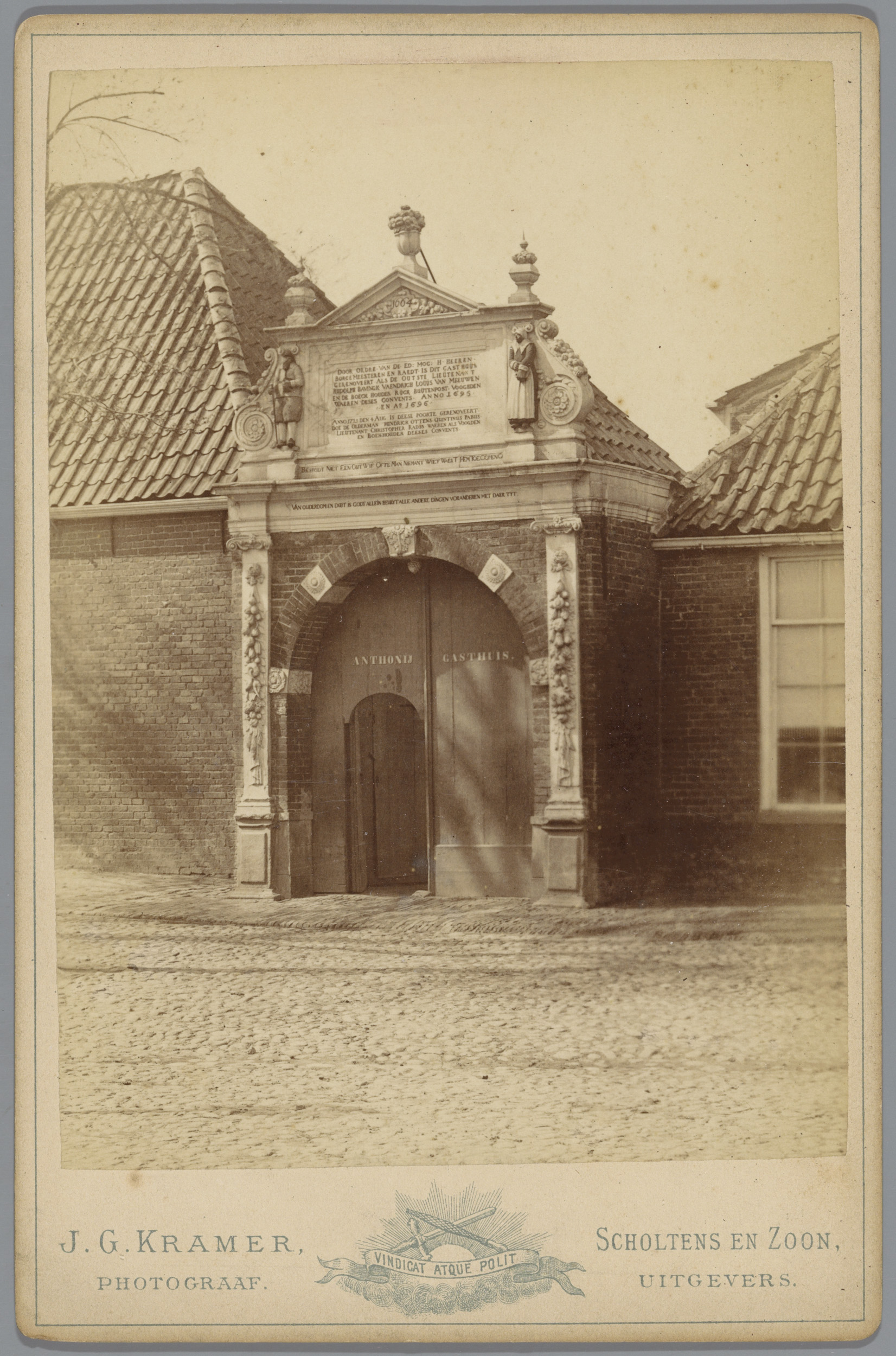 Gezicht op de poort van het Sint Anthonygasthuis in ...
