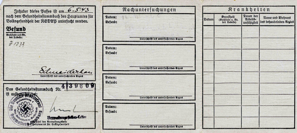 gezondheidsbewijs (Gesundheitspass) op naam van Magd...