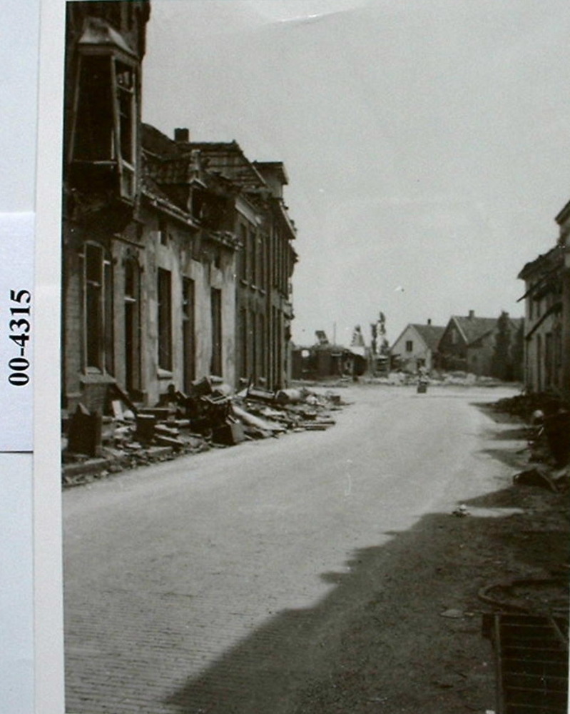 De Langestraat en Markt op de achtergrond vernielde ...