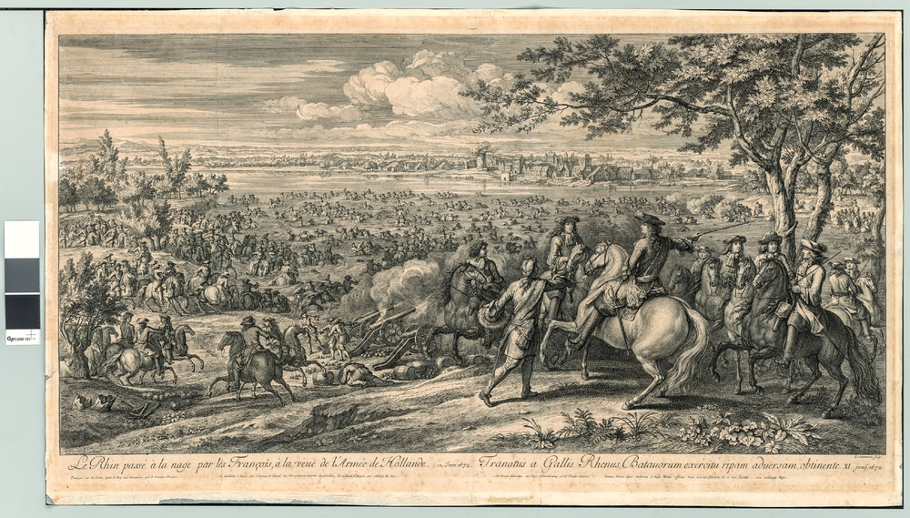 Gravure van De Doortocht van Lodewijk XIV over de Ri...