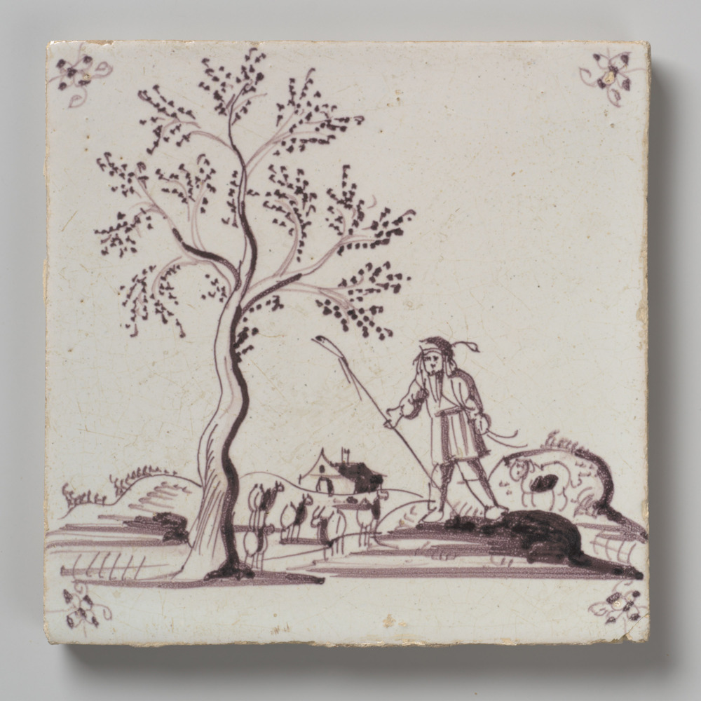 tegel van aardewerk met tinglazuur, voorstellende: h...