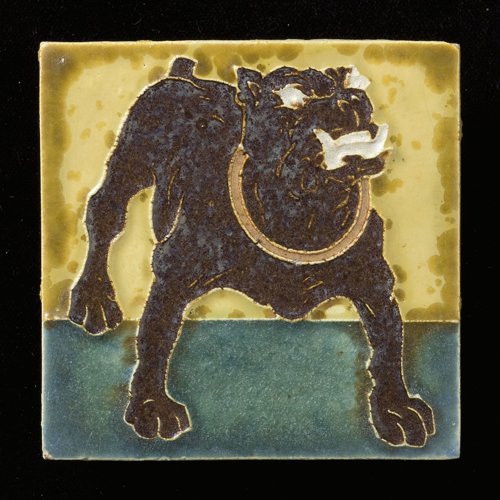 Tegel in cloisonné-techniek, met voorstelling: hond,...