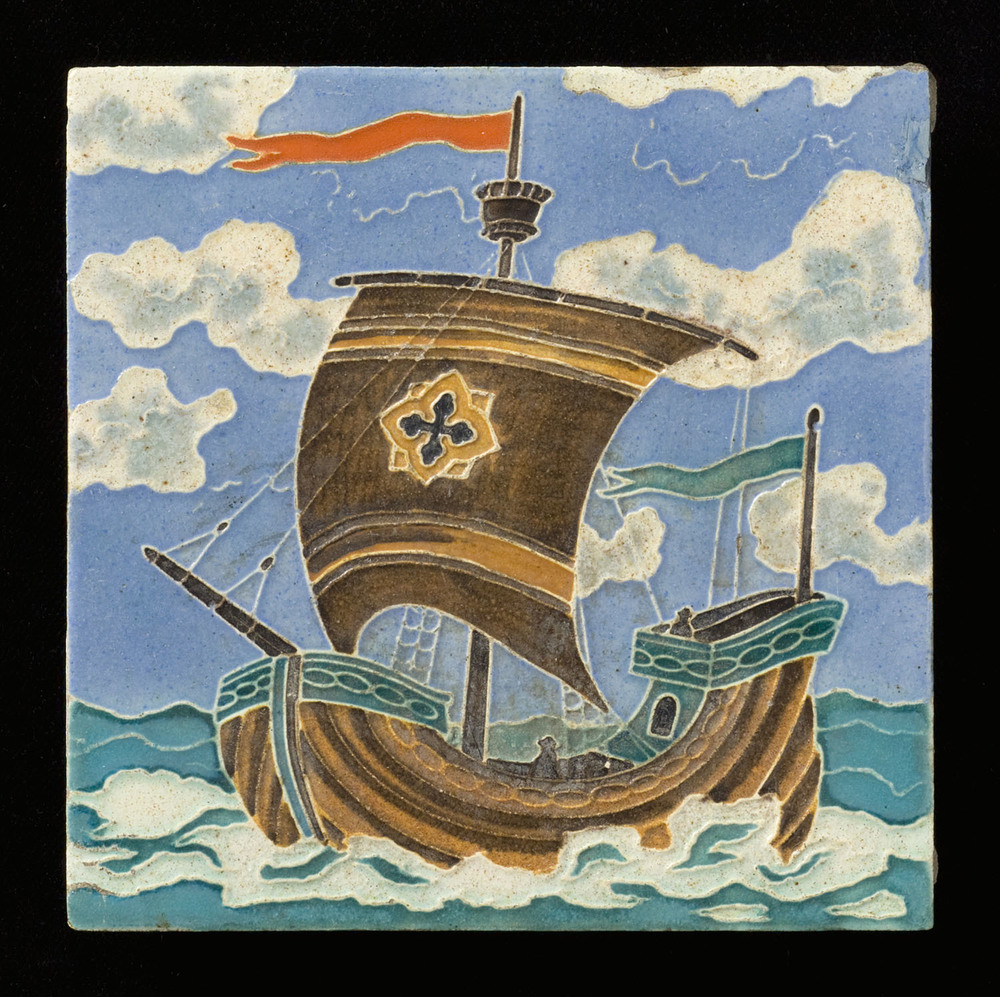 Tegel in cloisonné-techniek, voorstellende karveel, ...