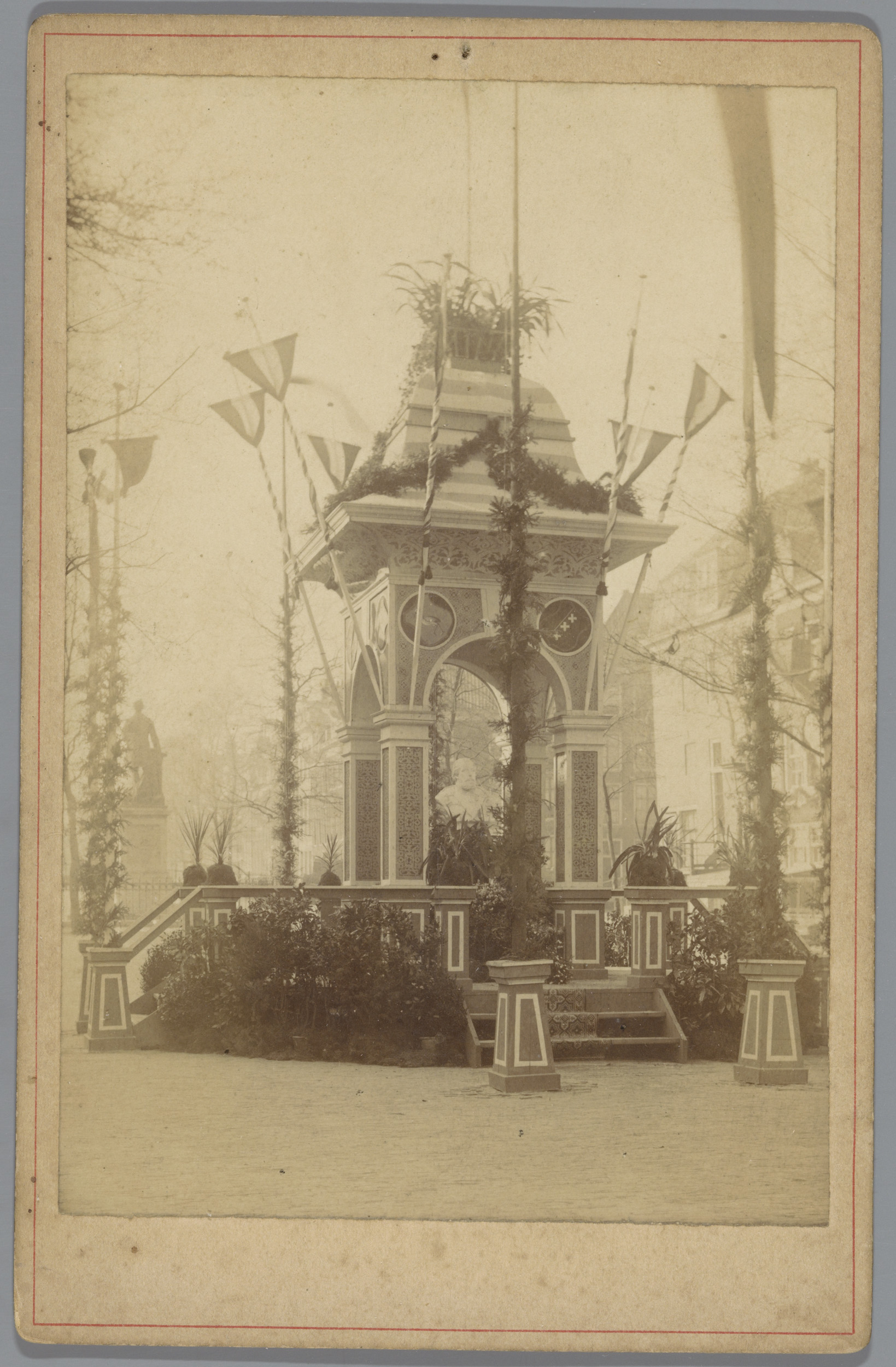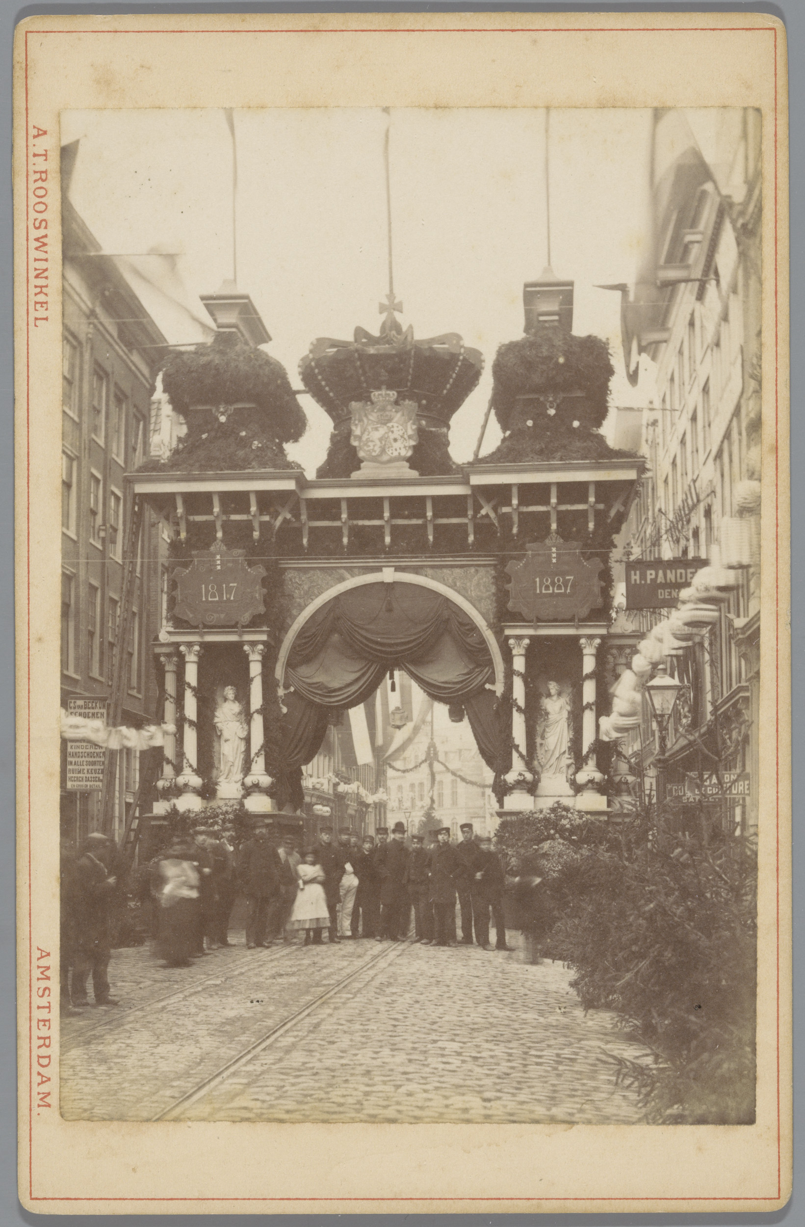 Versierde boog op het Thorbeckeplein in Amsterdam ti...