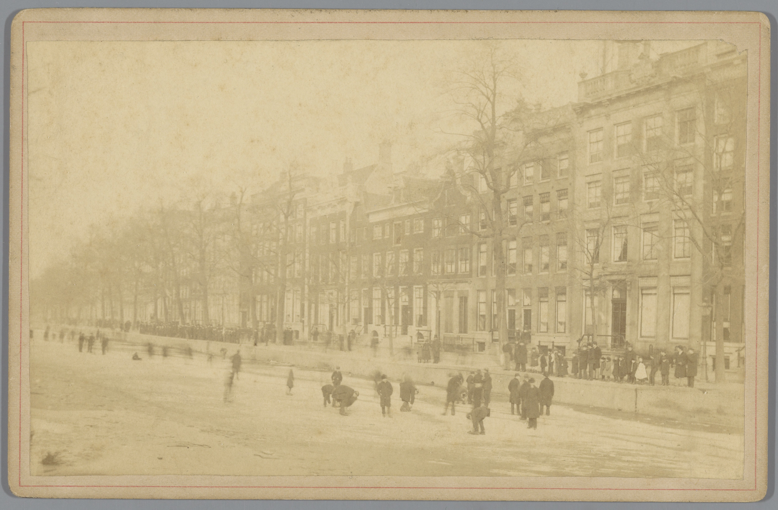 Schaatsende personen op de Keizersgracht in Amsterdam