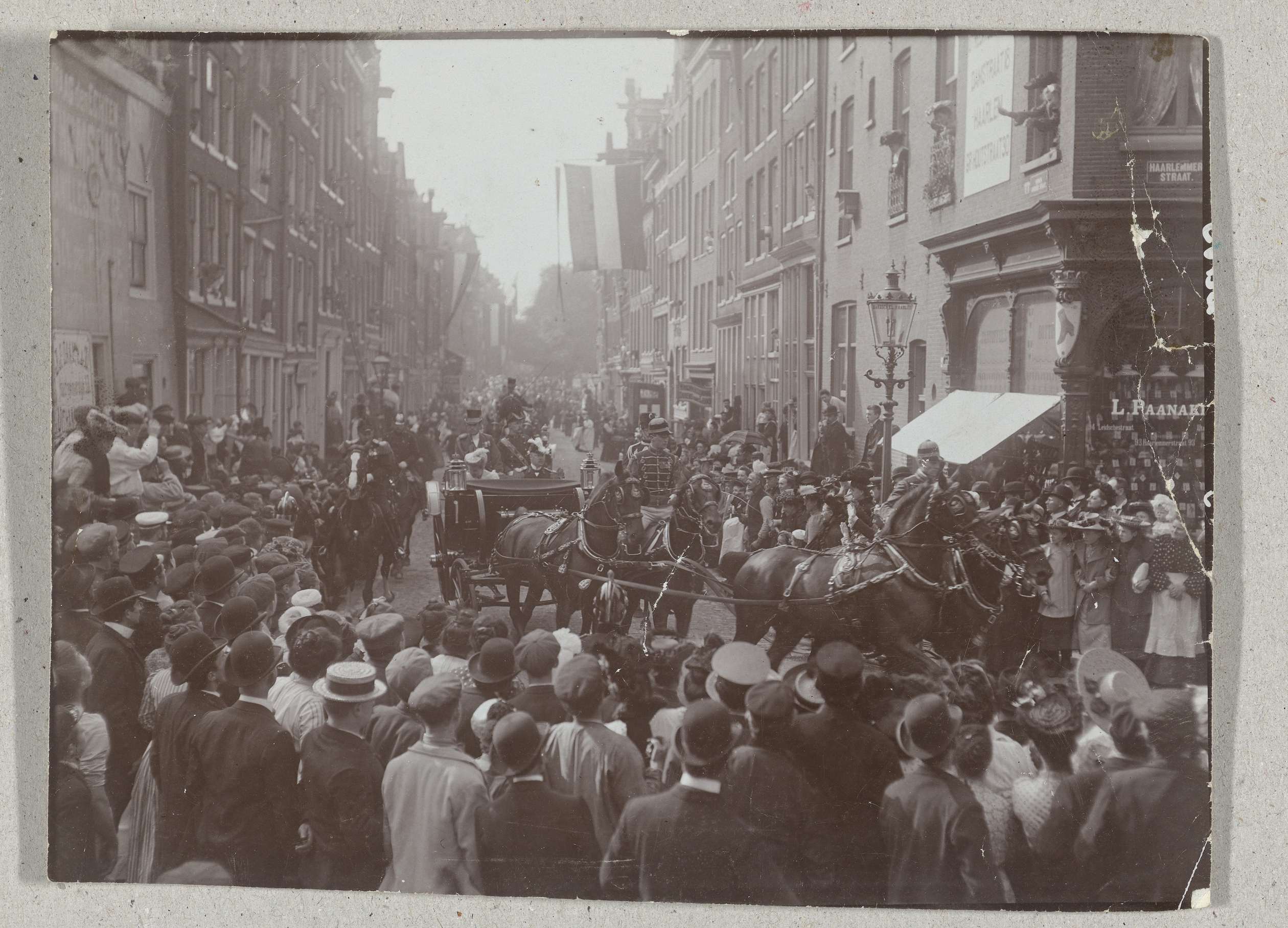 Rijtocht van koningin Wilhelmina en prins Hendrik na...