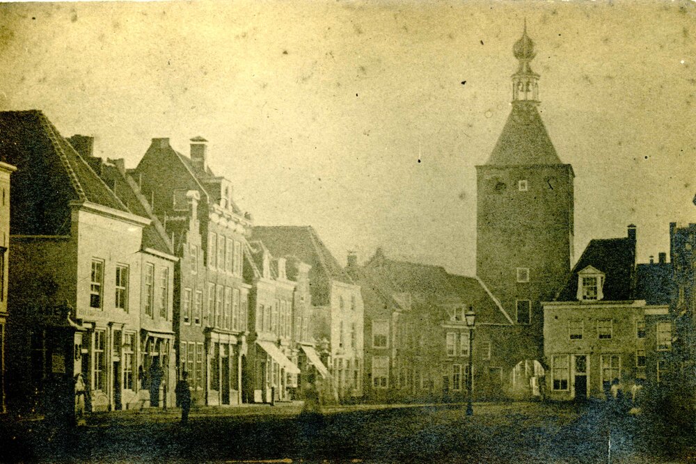 Foto, voorstellende de Markt met Binnenpoort te Cule...