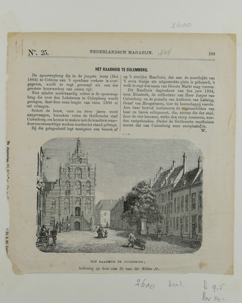Houtgravure, voorstellende de Markt in Culemborg ric...