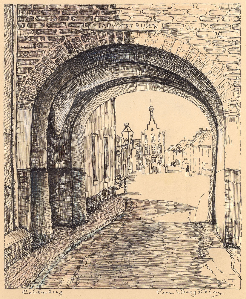 Pentekening, voorstellend een gezicht door de Binnen...
