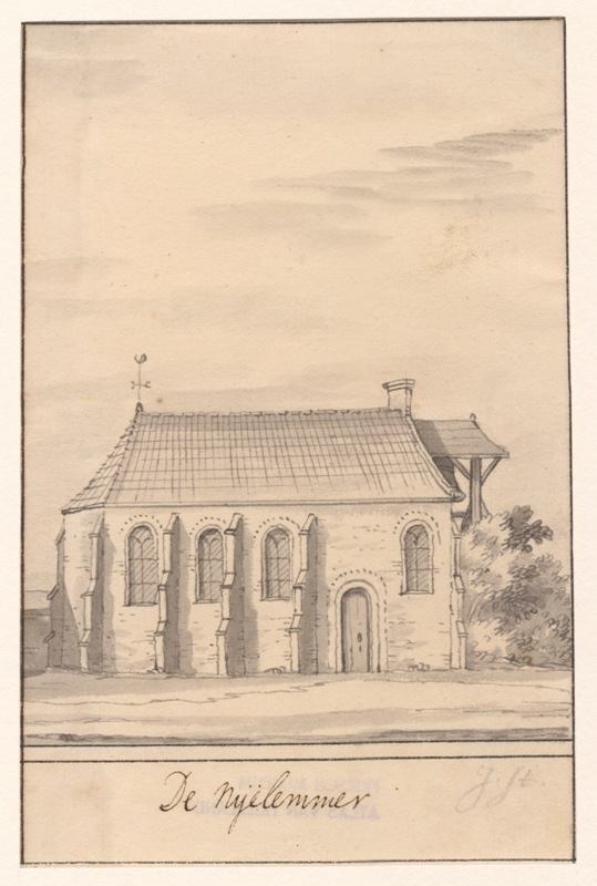 Gezicht op de kerk met klokstelling te Nijelamer in ...