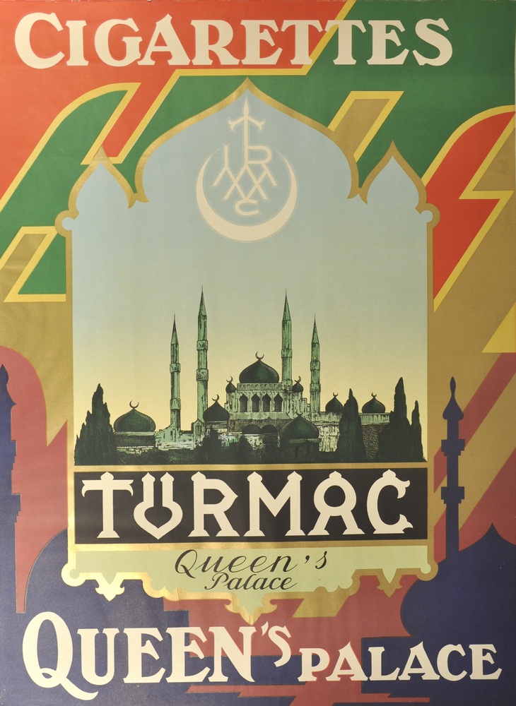 Reclameposter op papier. TURMAC en een afbeelding va...