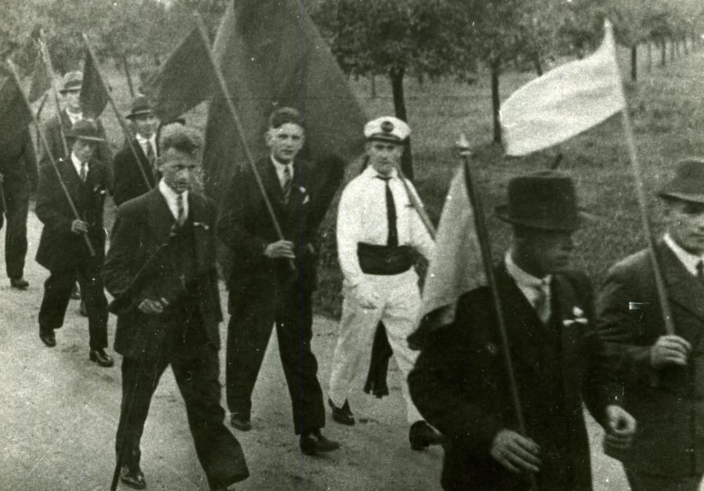 Zwart-wit foto van de Schutterij Eensgezindheid in A...