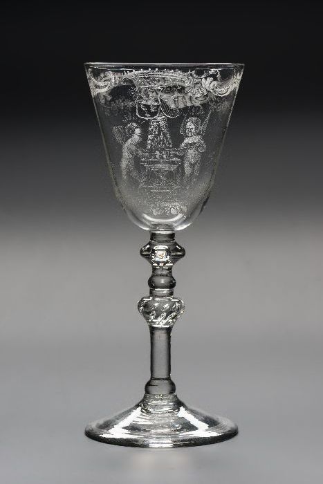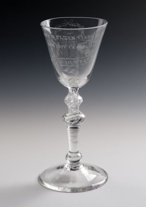 Kelkglas met stipgravering van wapen van Rotterdam e...