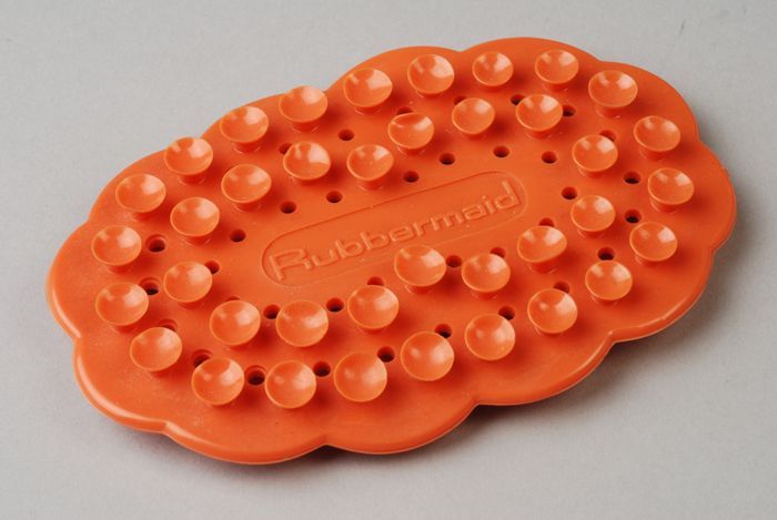 Ovale oranje kunststof zeepbakmatje van "Rubbermaid"...