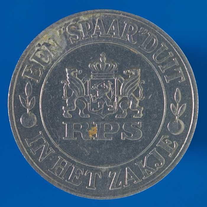 Penning met "RPS Een "spaar"duit in het zakje" en "D...