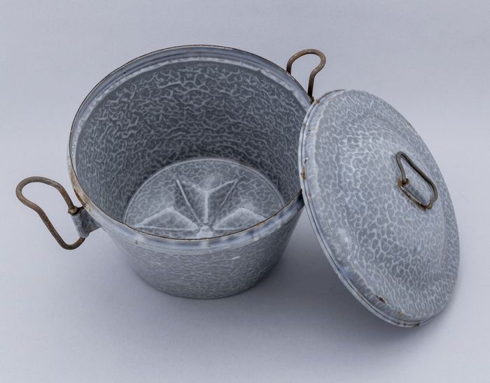 Grijs gewolkte puddingvorm met deksel