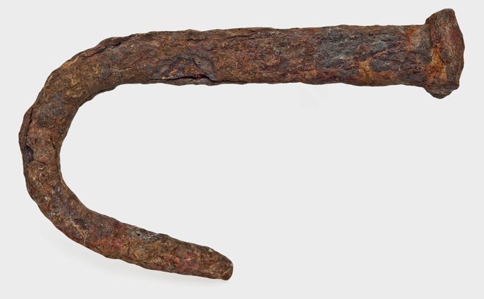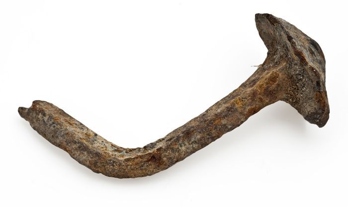 Kromme, vierkant gesmede spijker