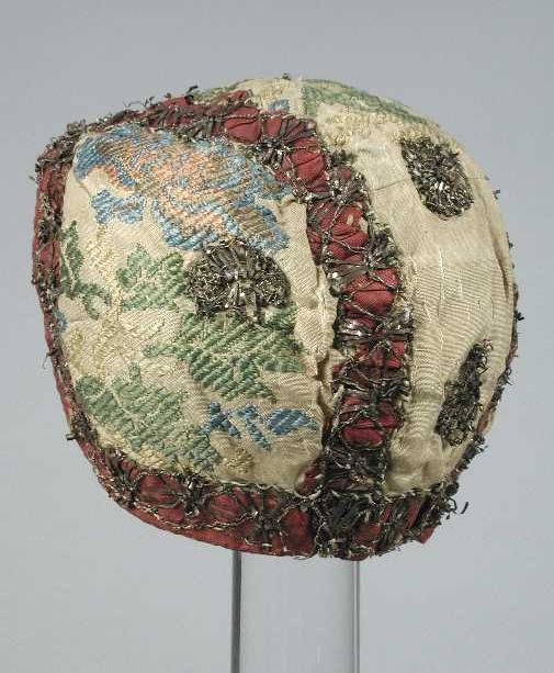 Babymuts van crèmekleurig gebrocheerde zijde, met bo...
