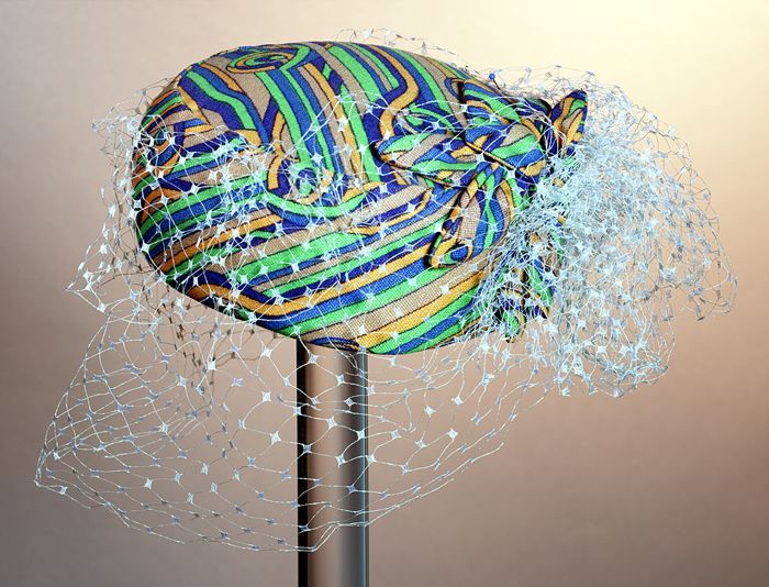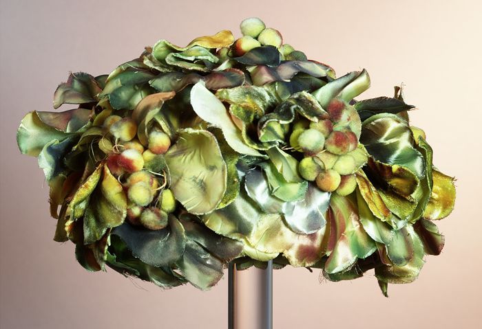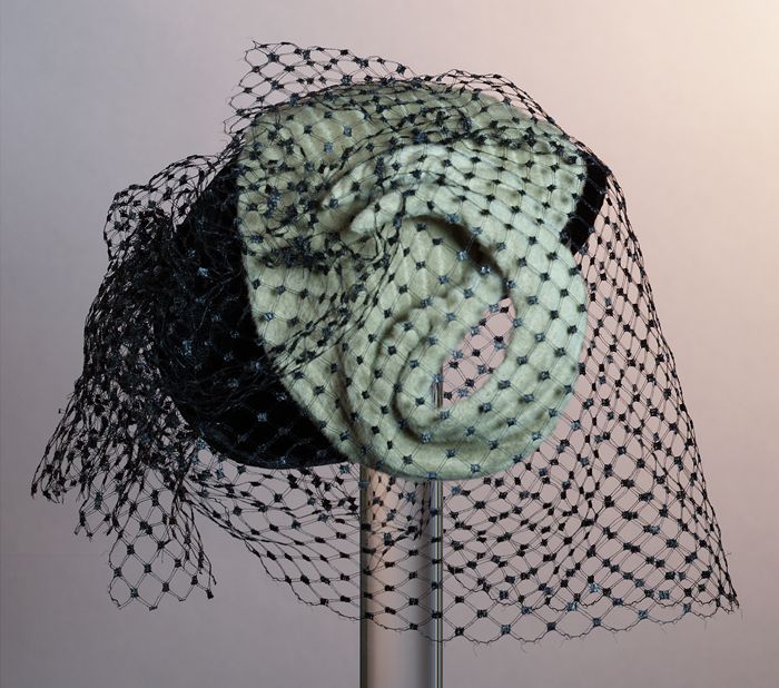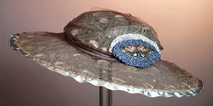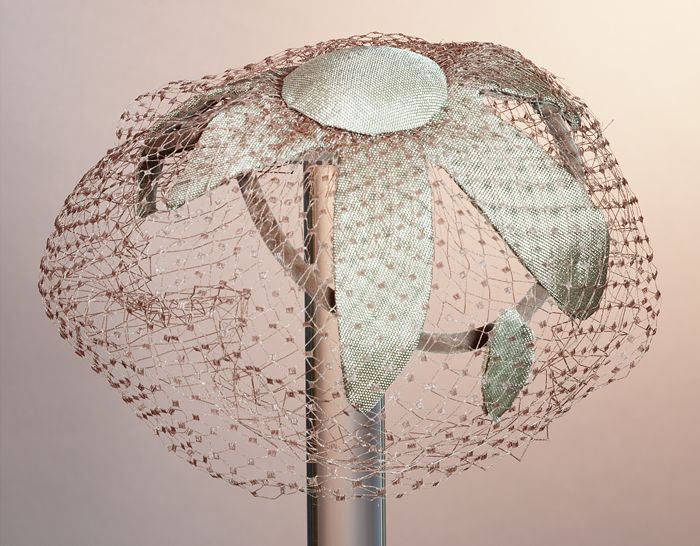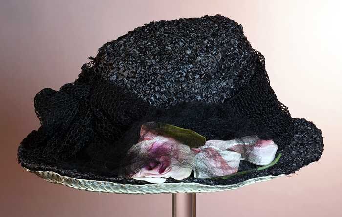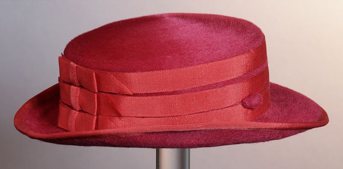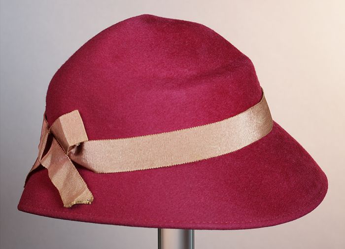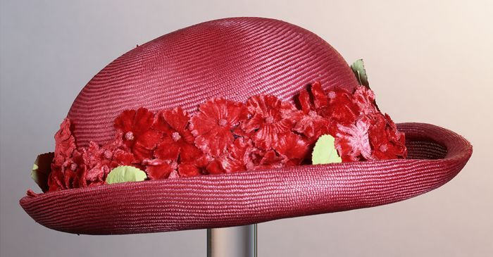 Roze dameshoed, op bol schelpvorm met vlindermotief ...