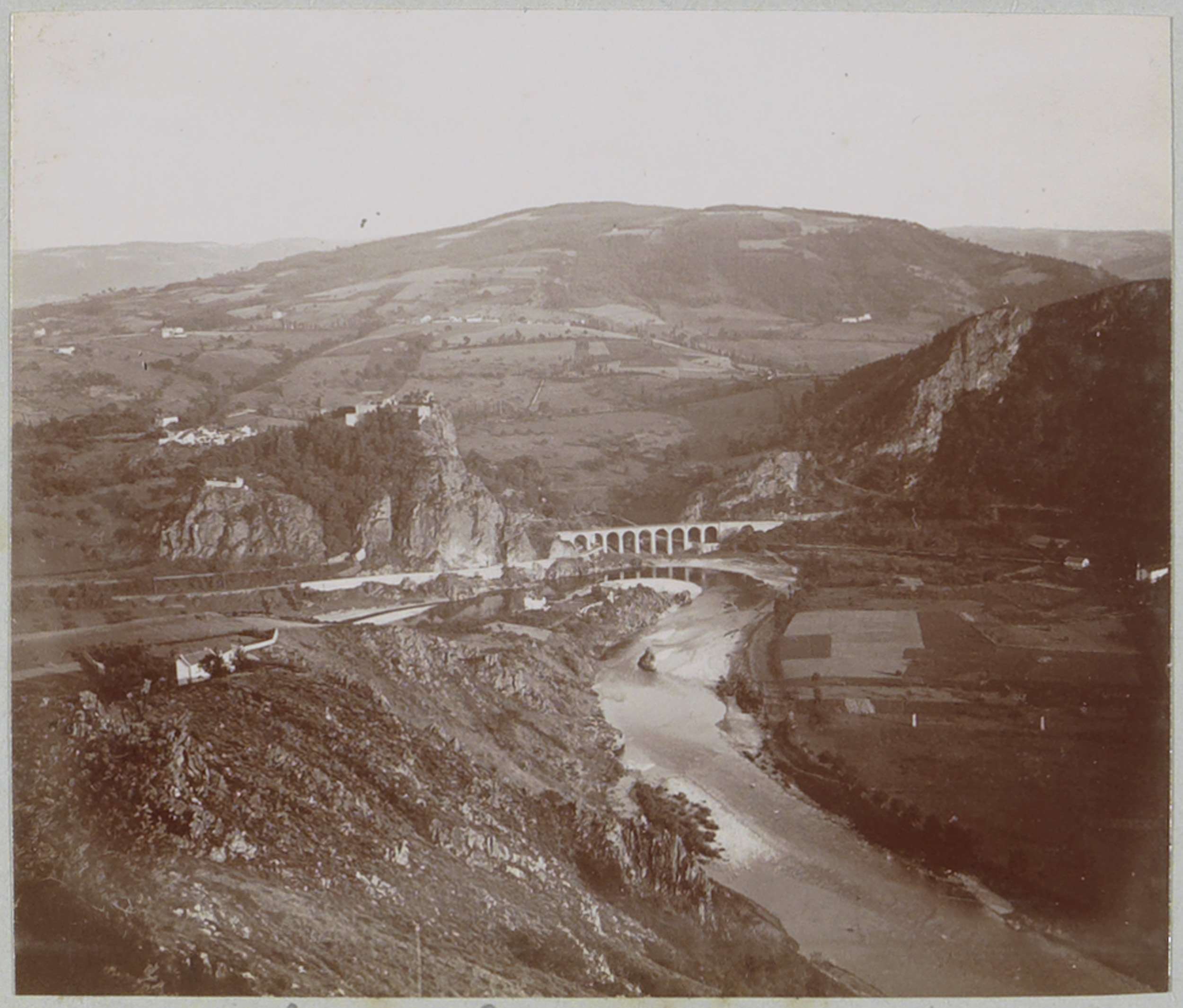 Gezicht op Saint-Paul-en-Cornillon met viaduct