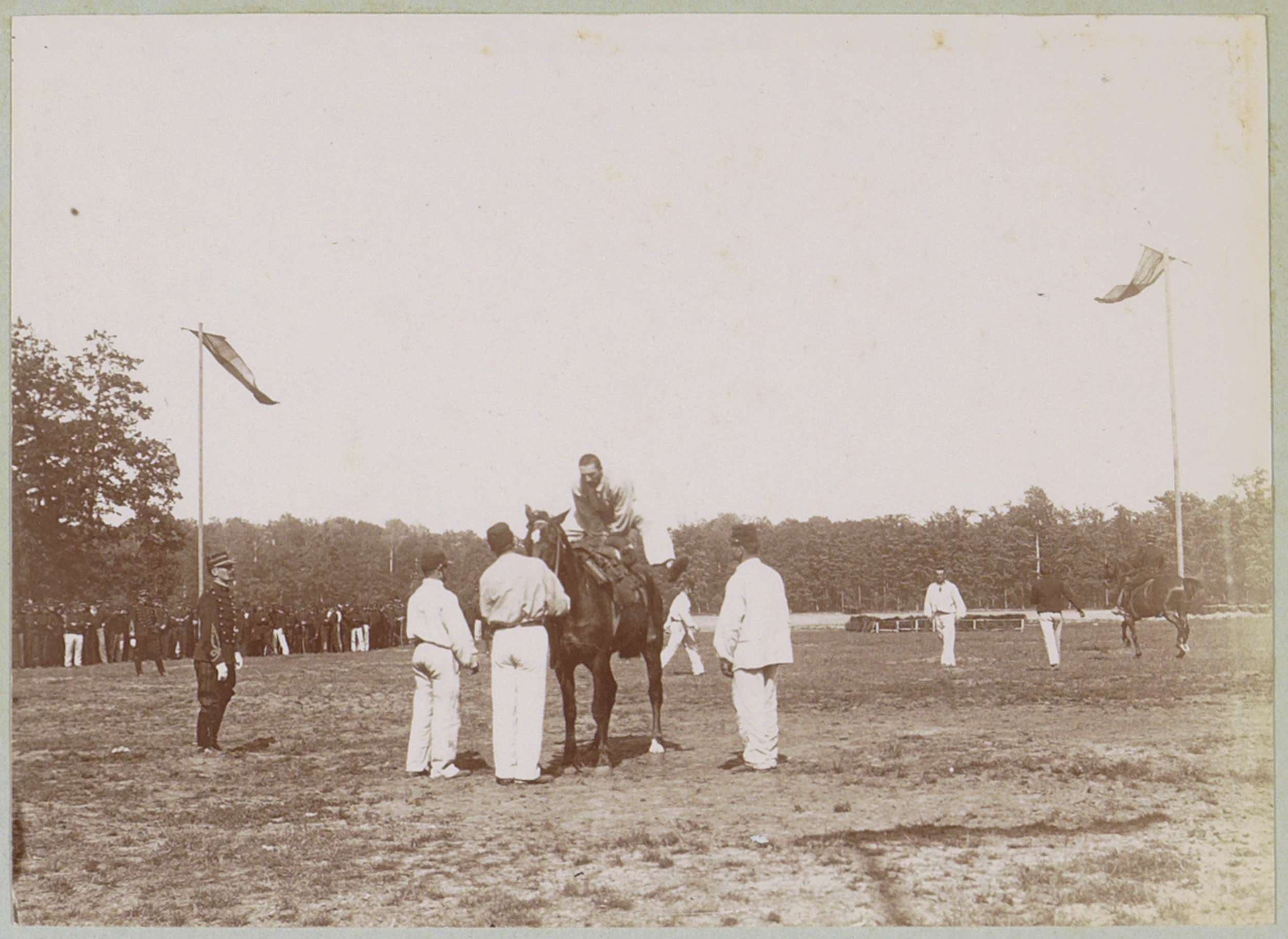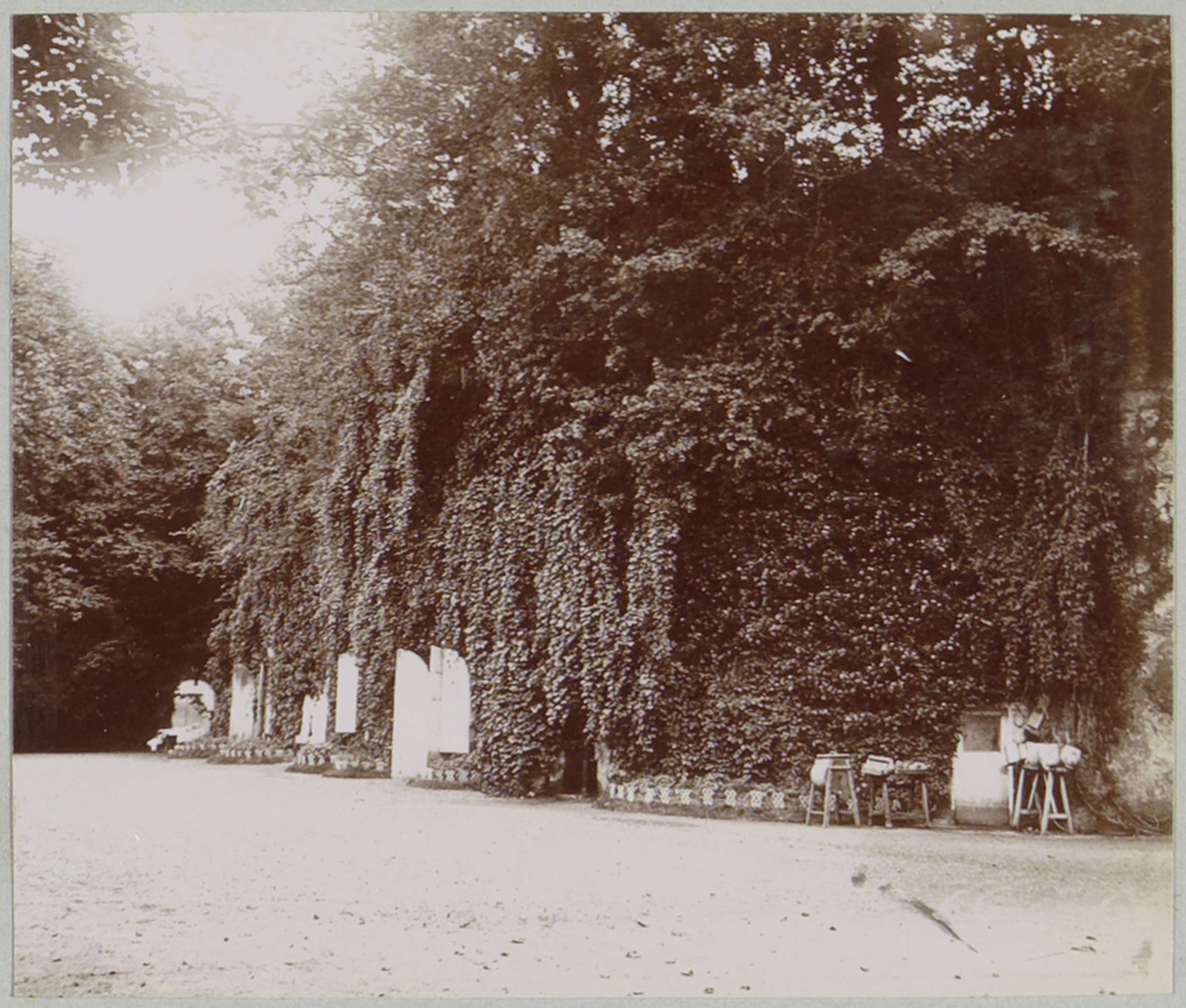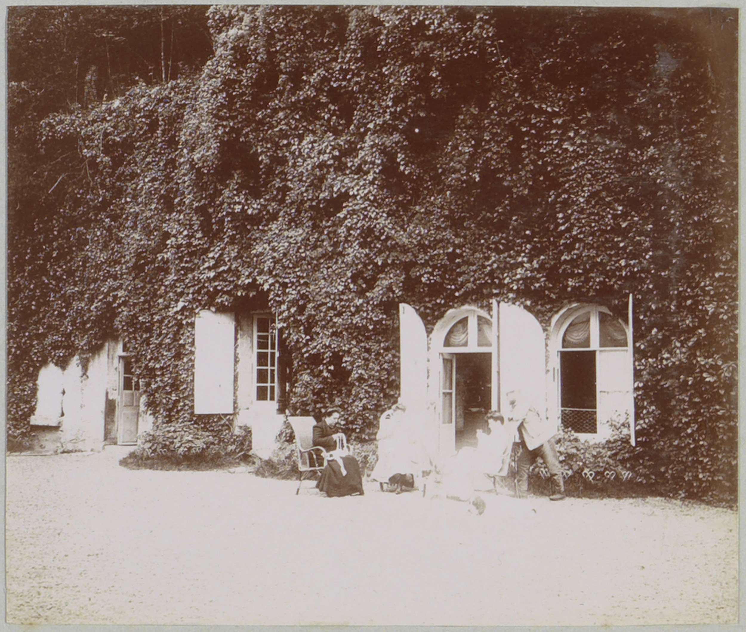 Gezelschap zittend op een binnenplaats (aangeduid al...