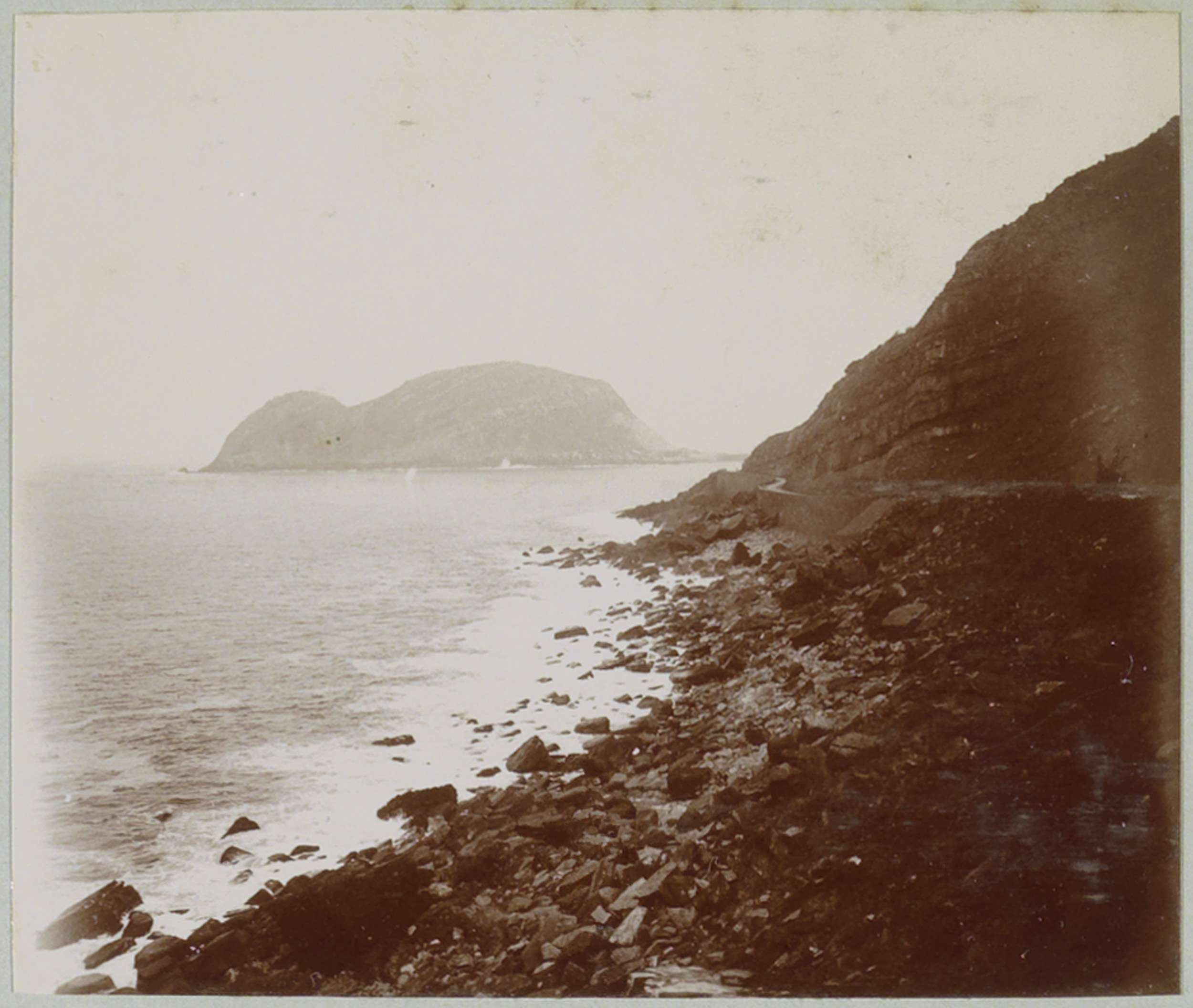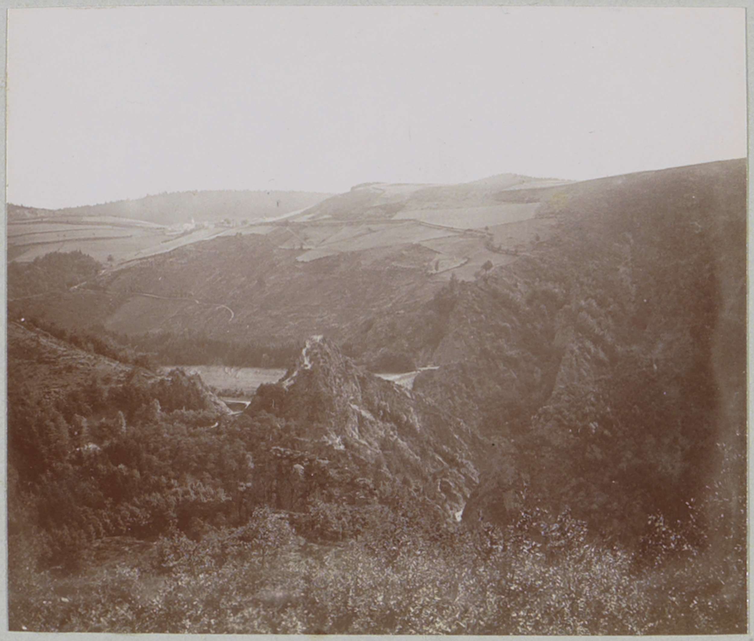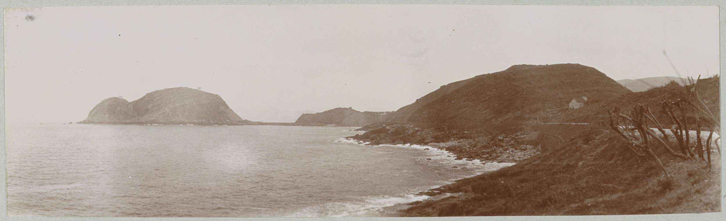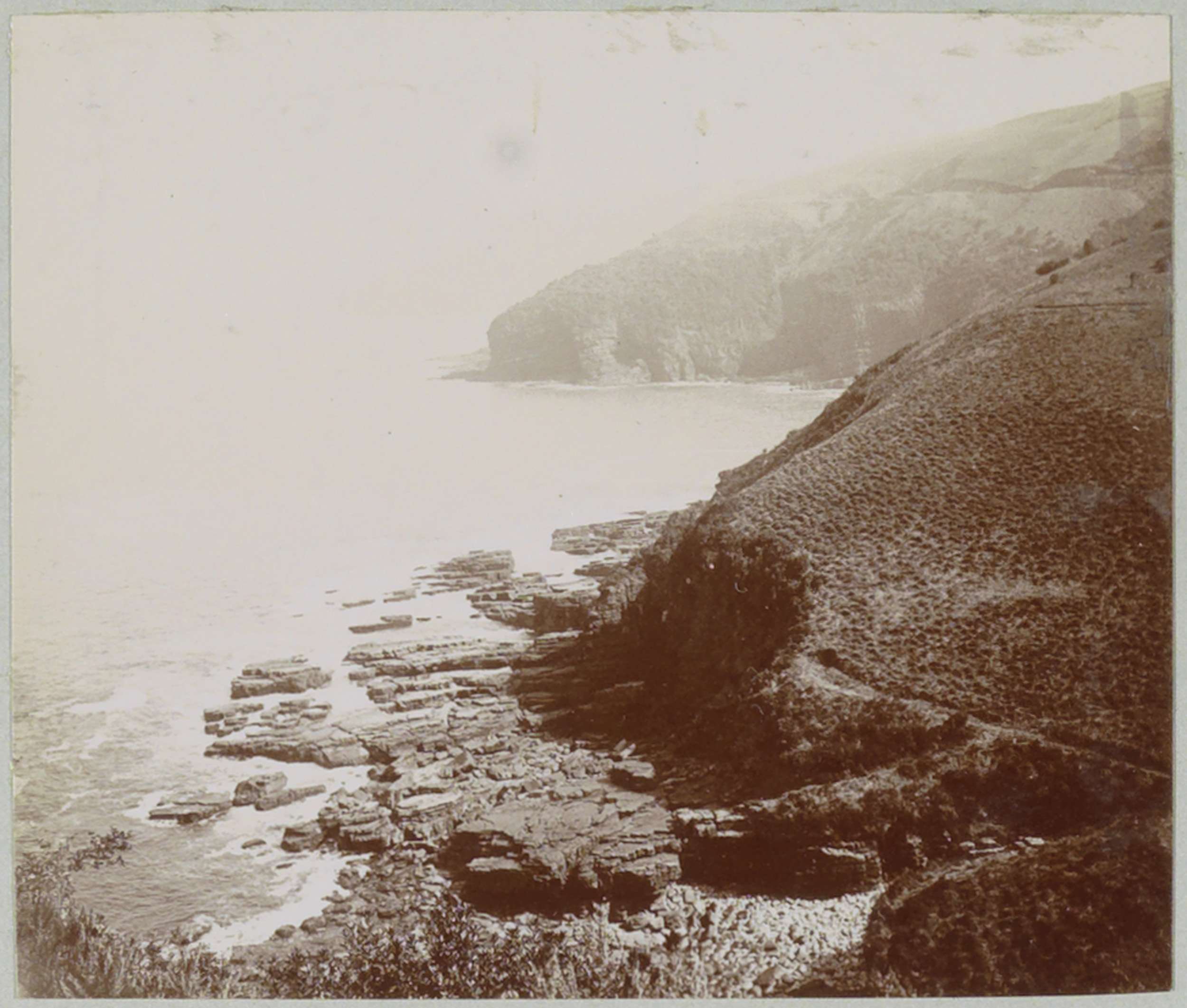 Gezicht op een bergachtige kust, vermoedelijk in Fra...