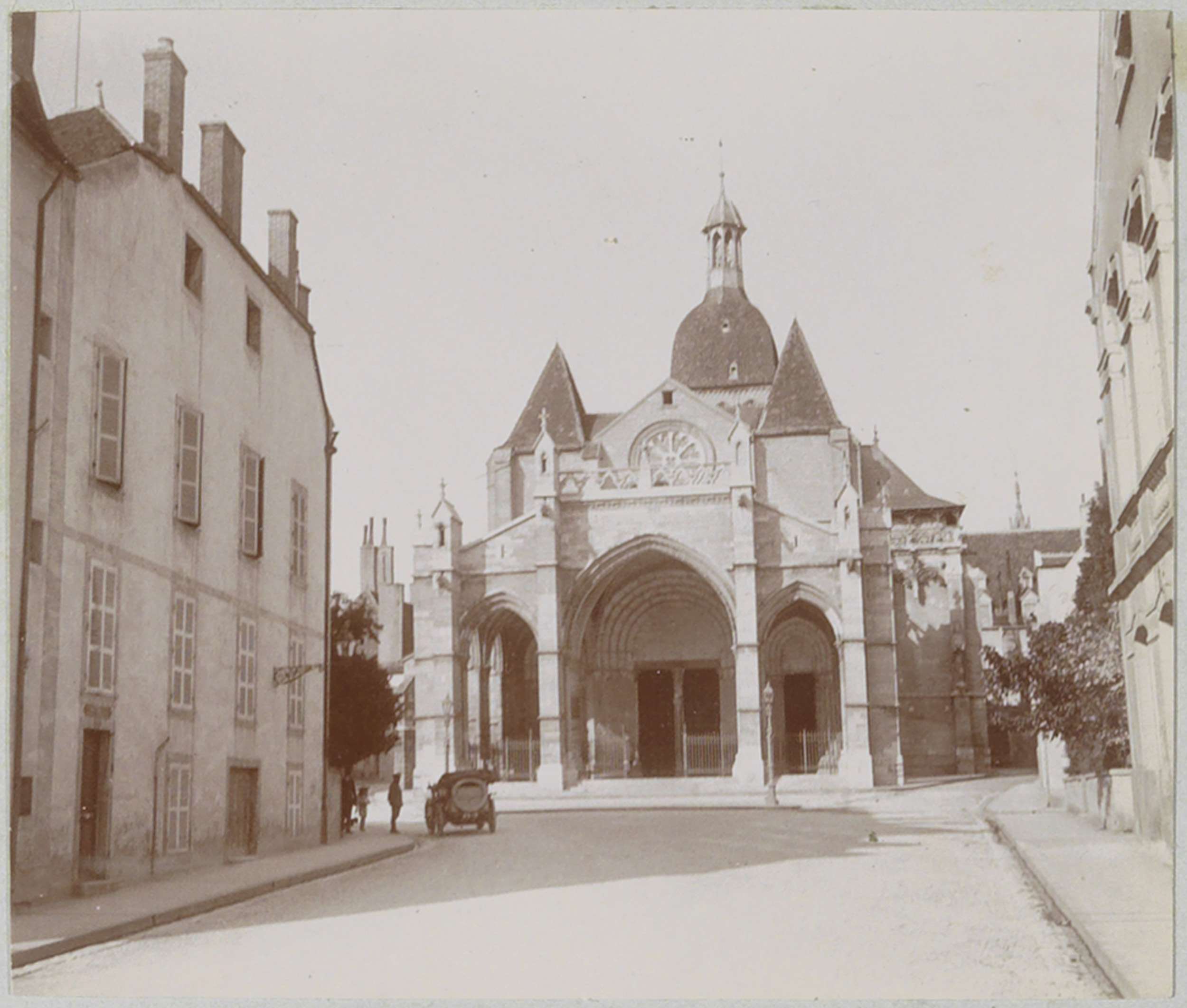 Straat met zicht op de Basiliek van Notre-Dame in Be...