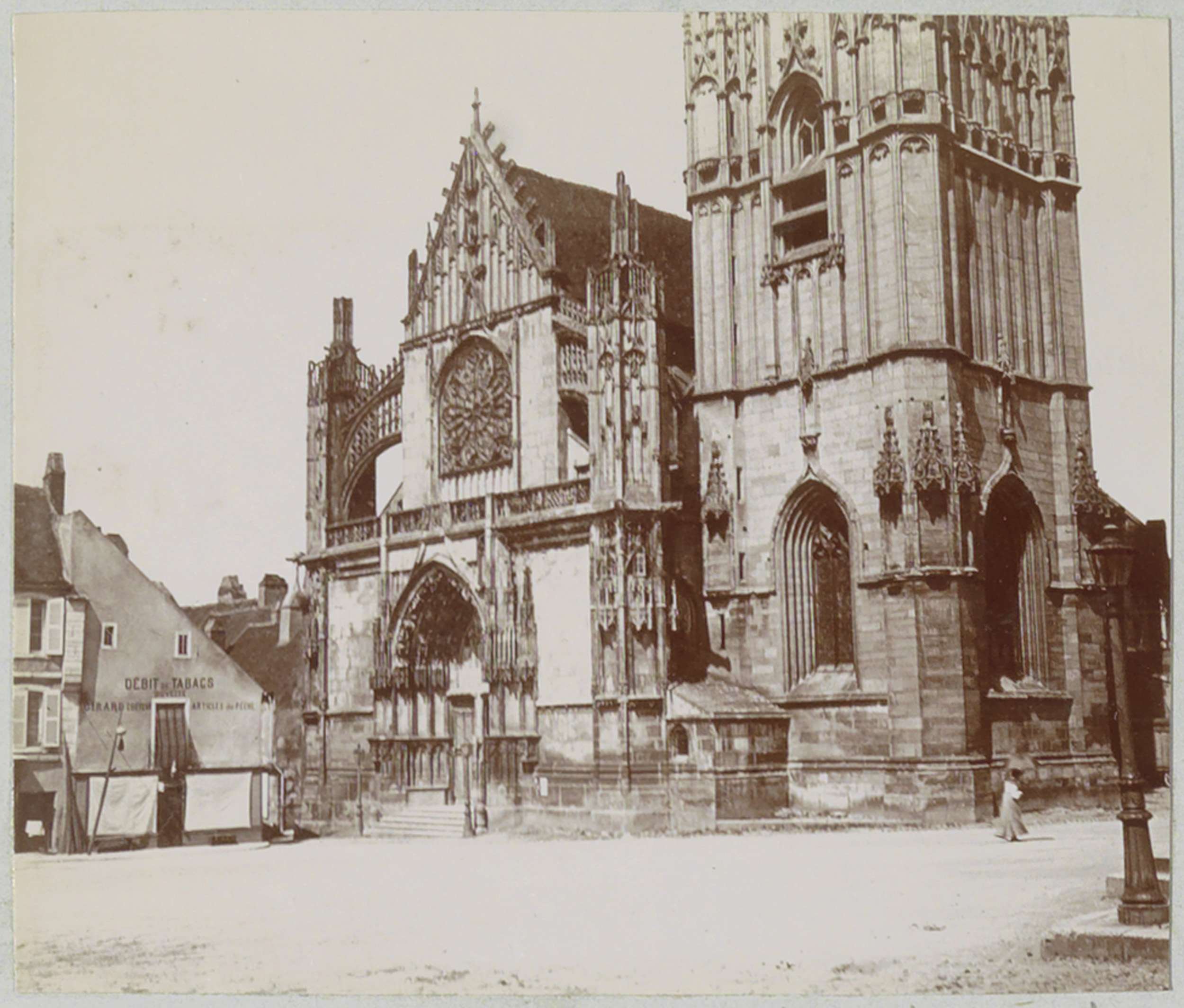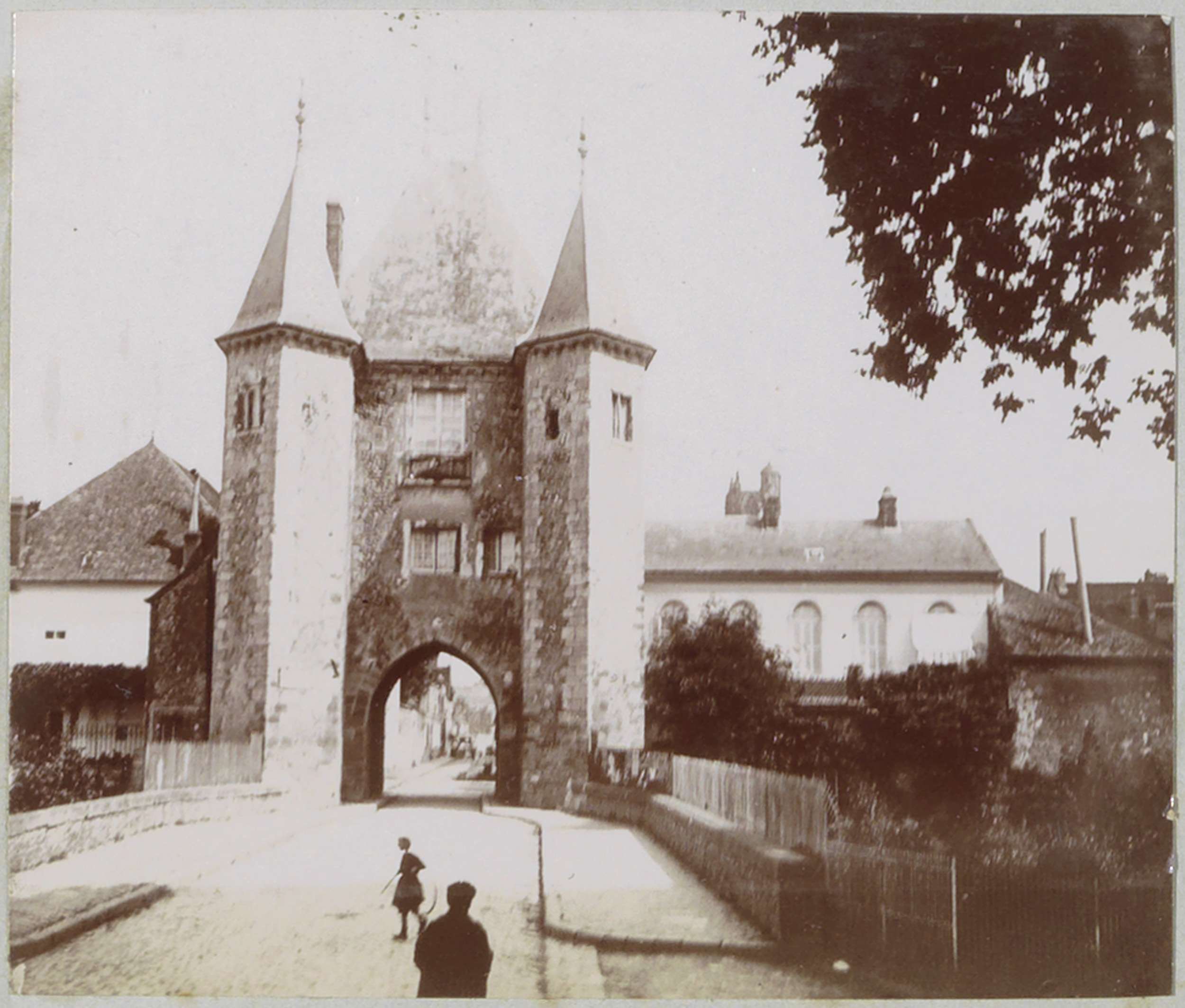 Gezicht op een stadspoort in Villeneuve-sur-Yonne, m...