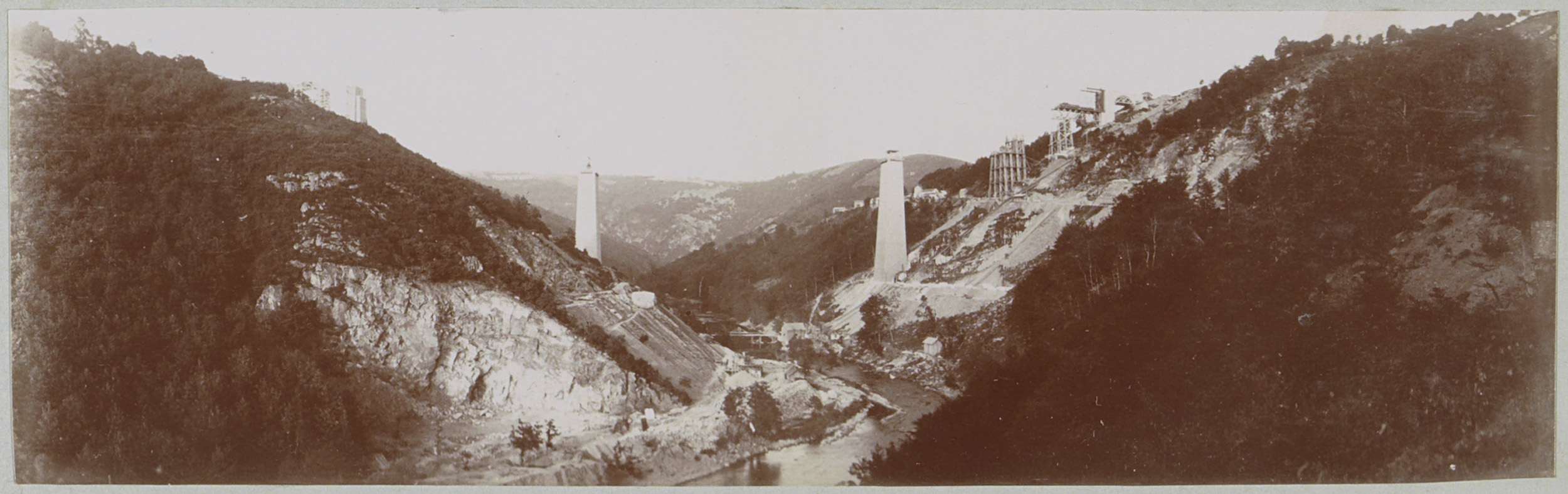 Viaduct des Fades in aanbouw over de Sioule in de Au...
