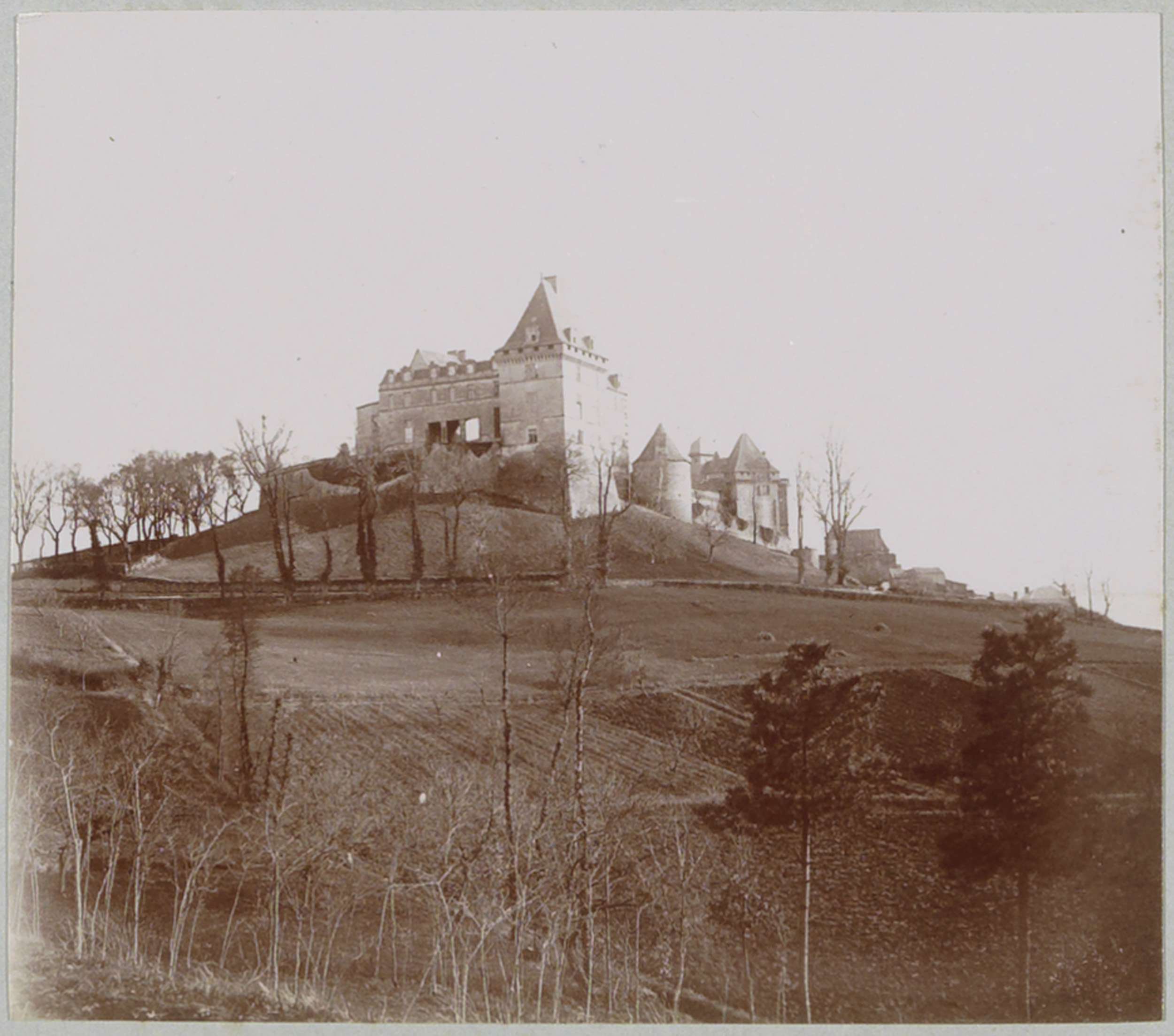 Landschap in Aquitanië met in de verte het Kasteel v...