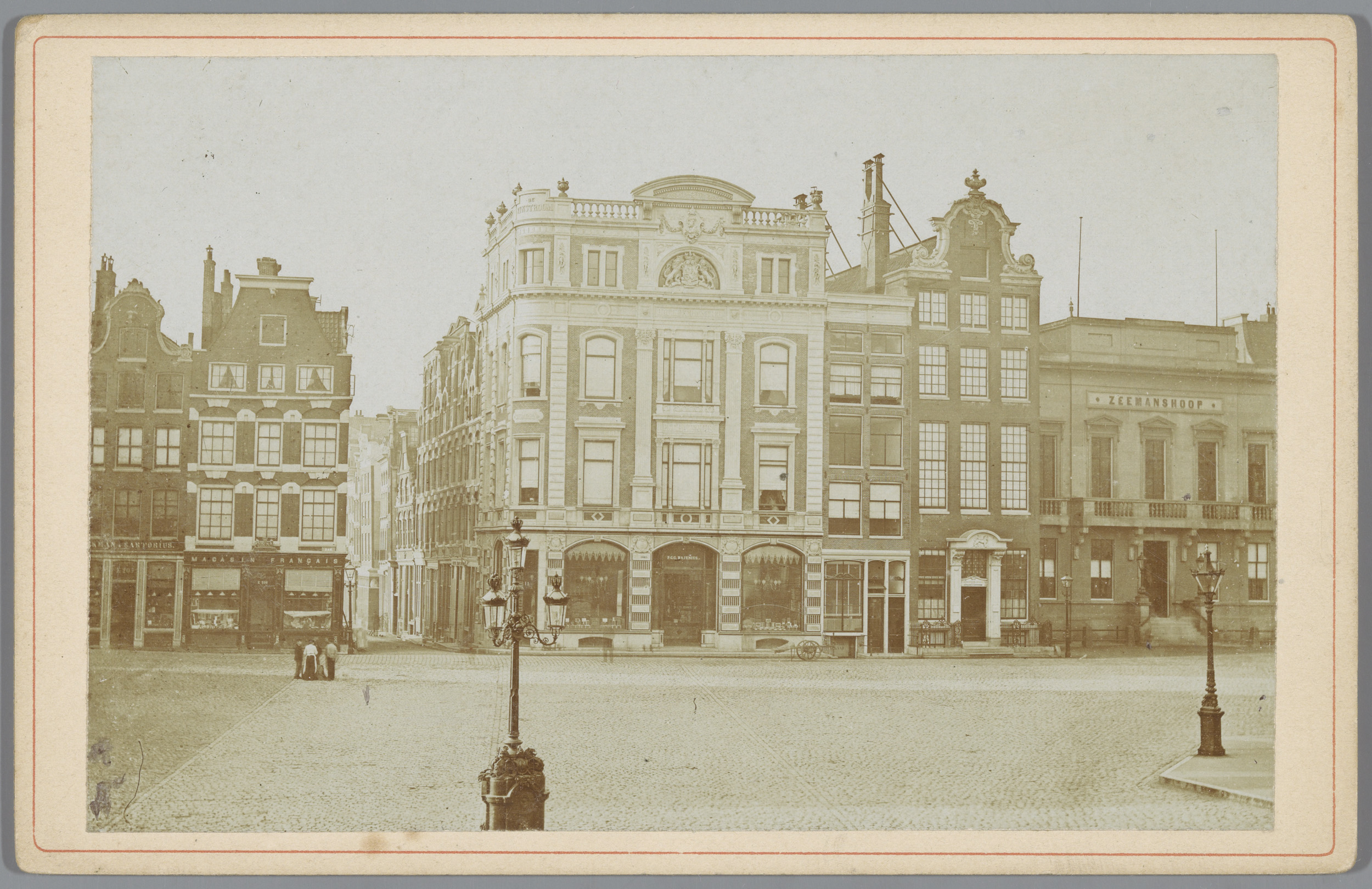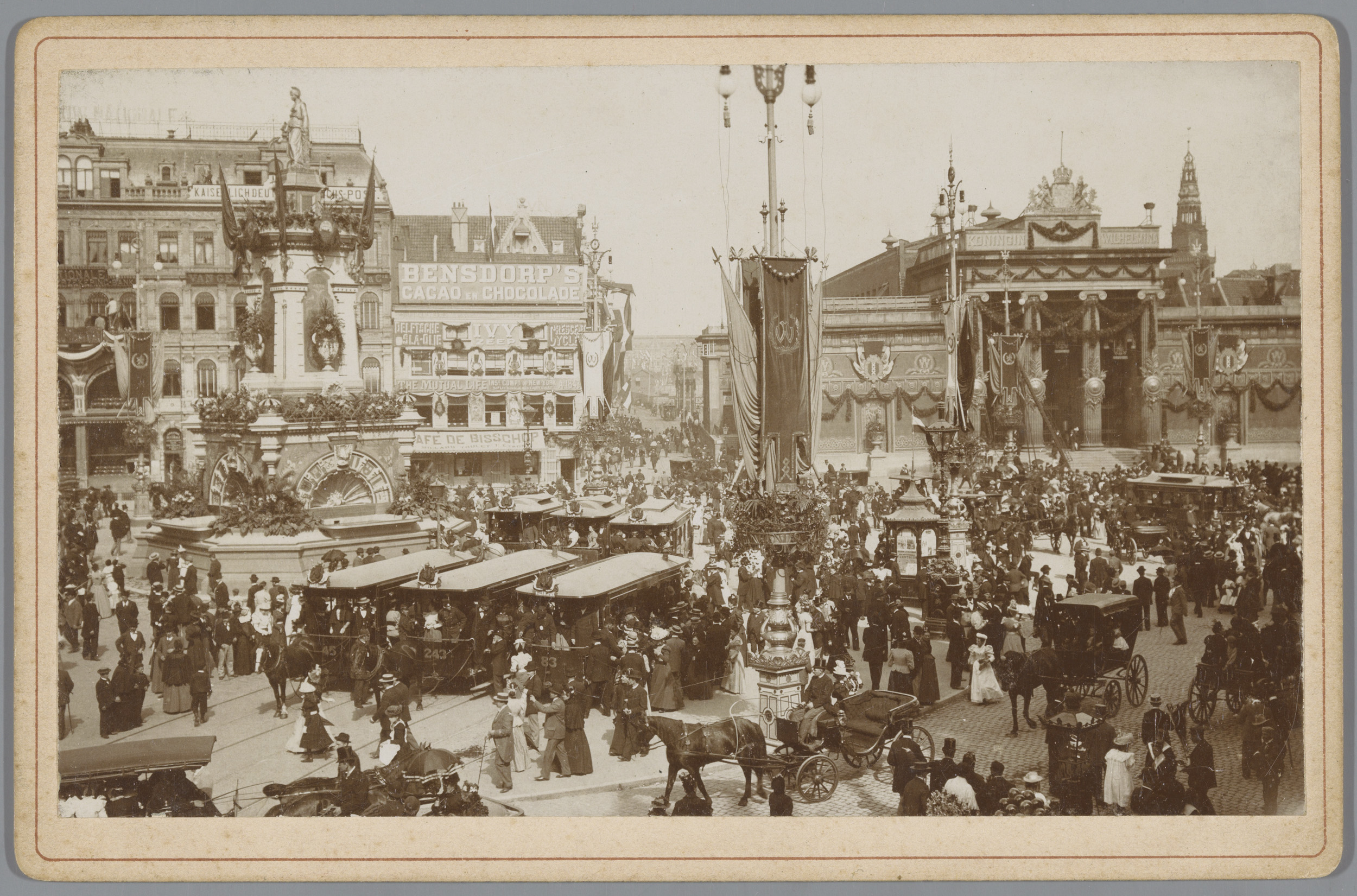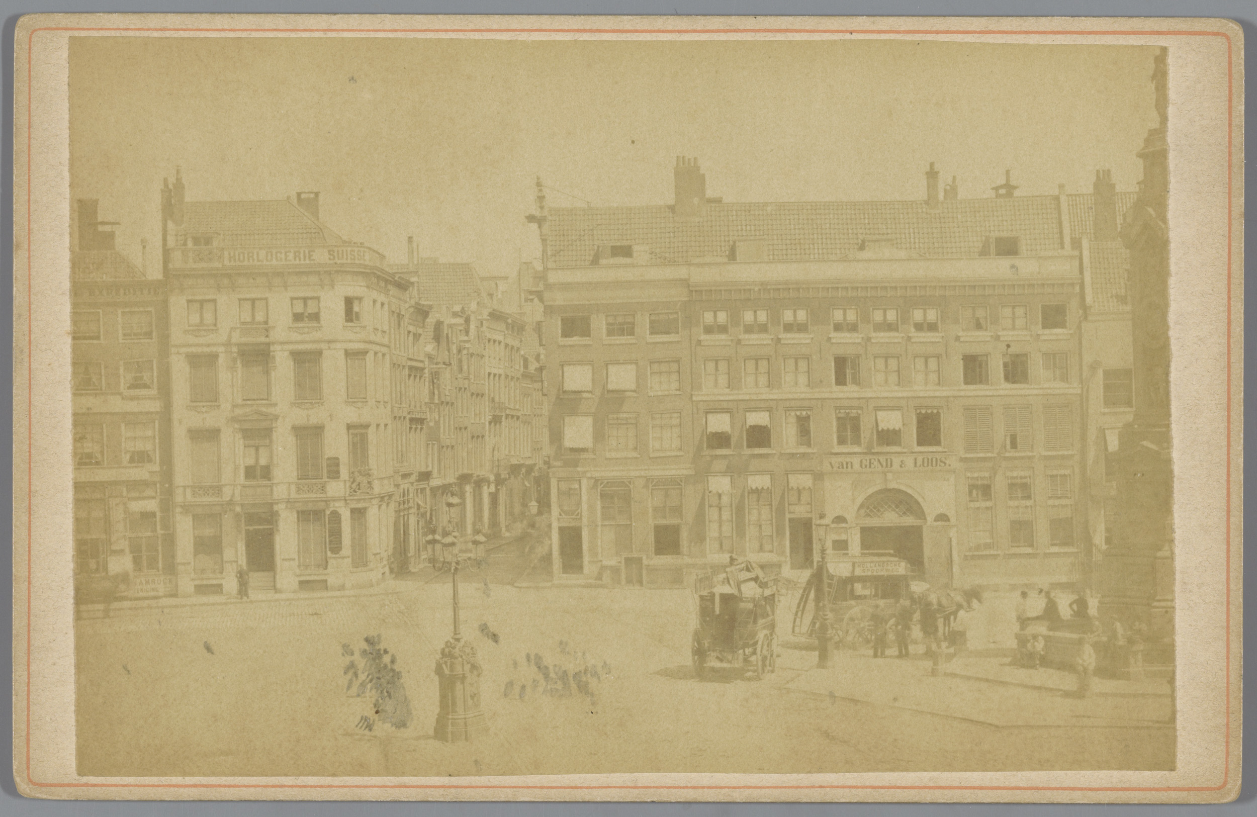 Gezicht op de Dam en de Beurs van Zocher tijdens de ...