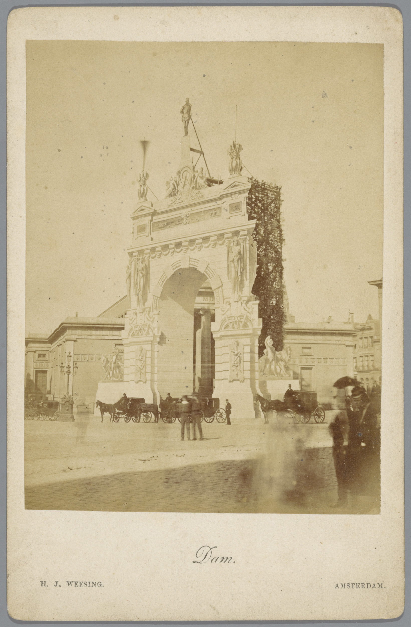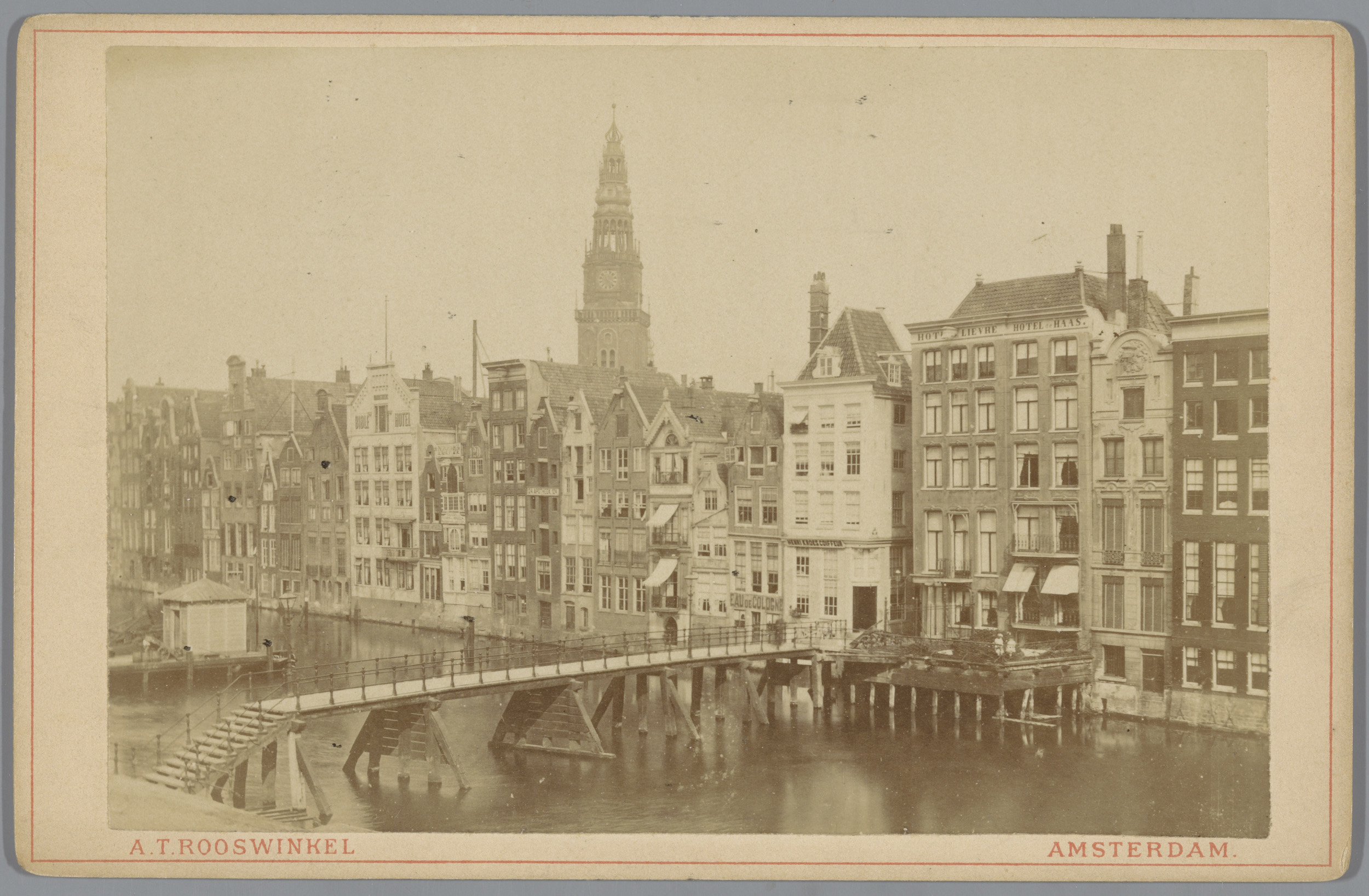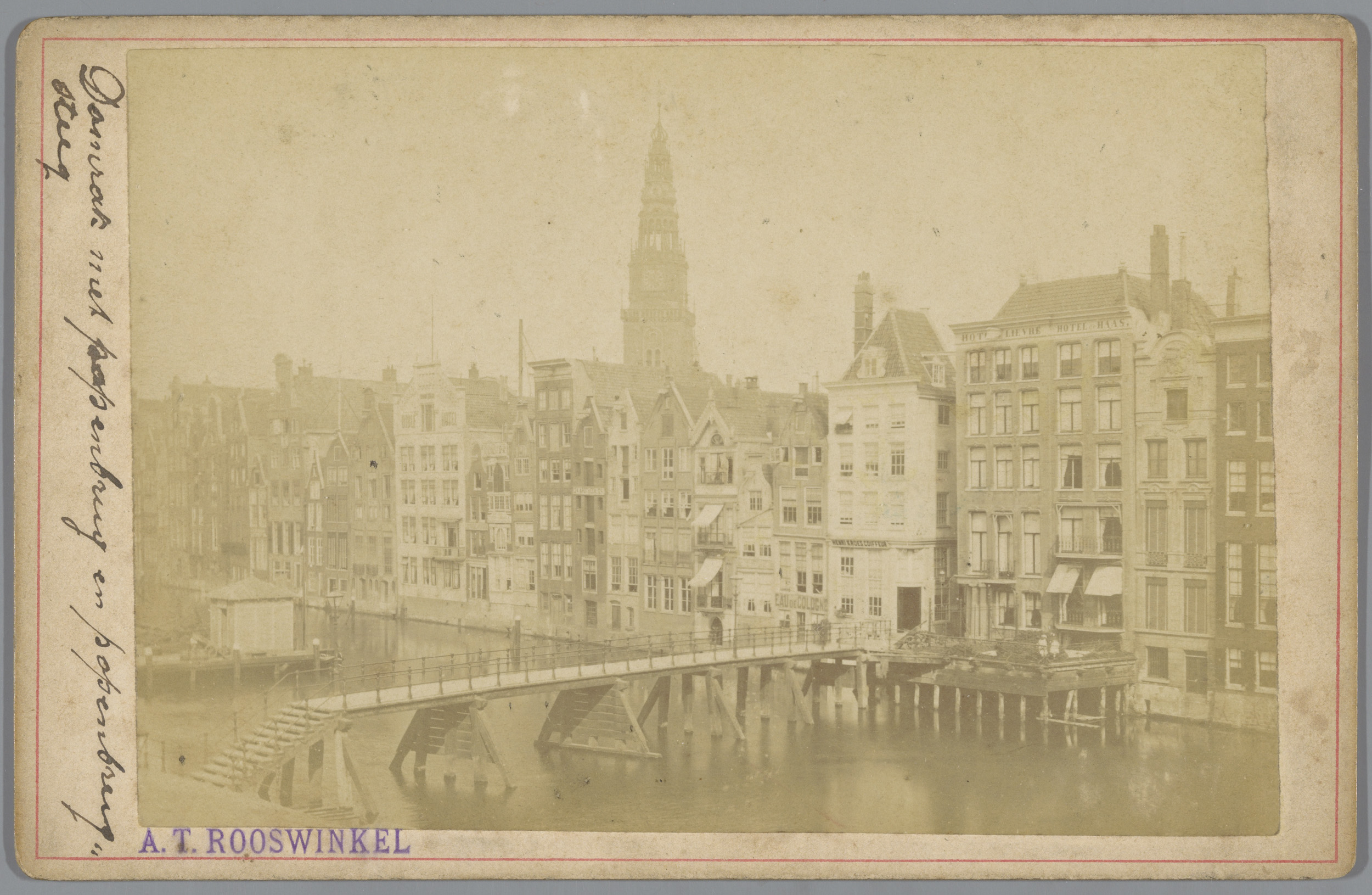 Gezicht op de Dam en de Beurs van Zocher tijdens de ...