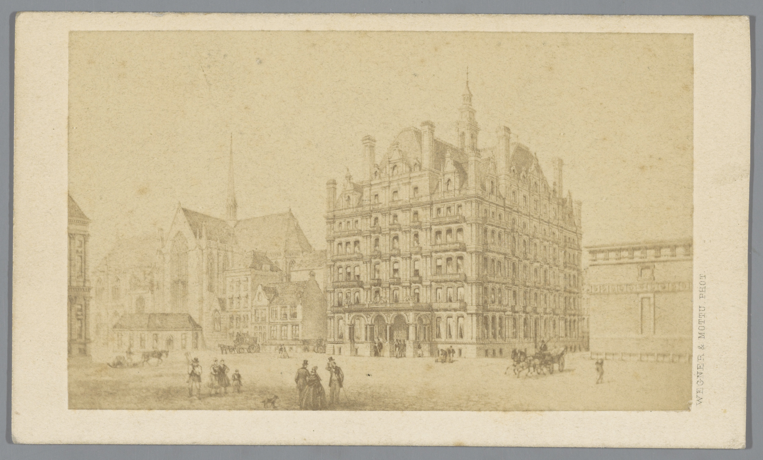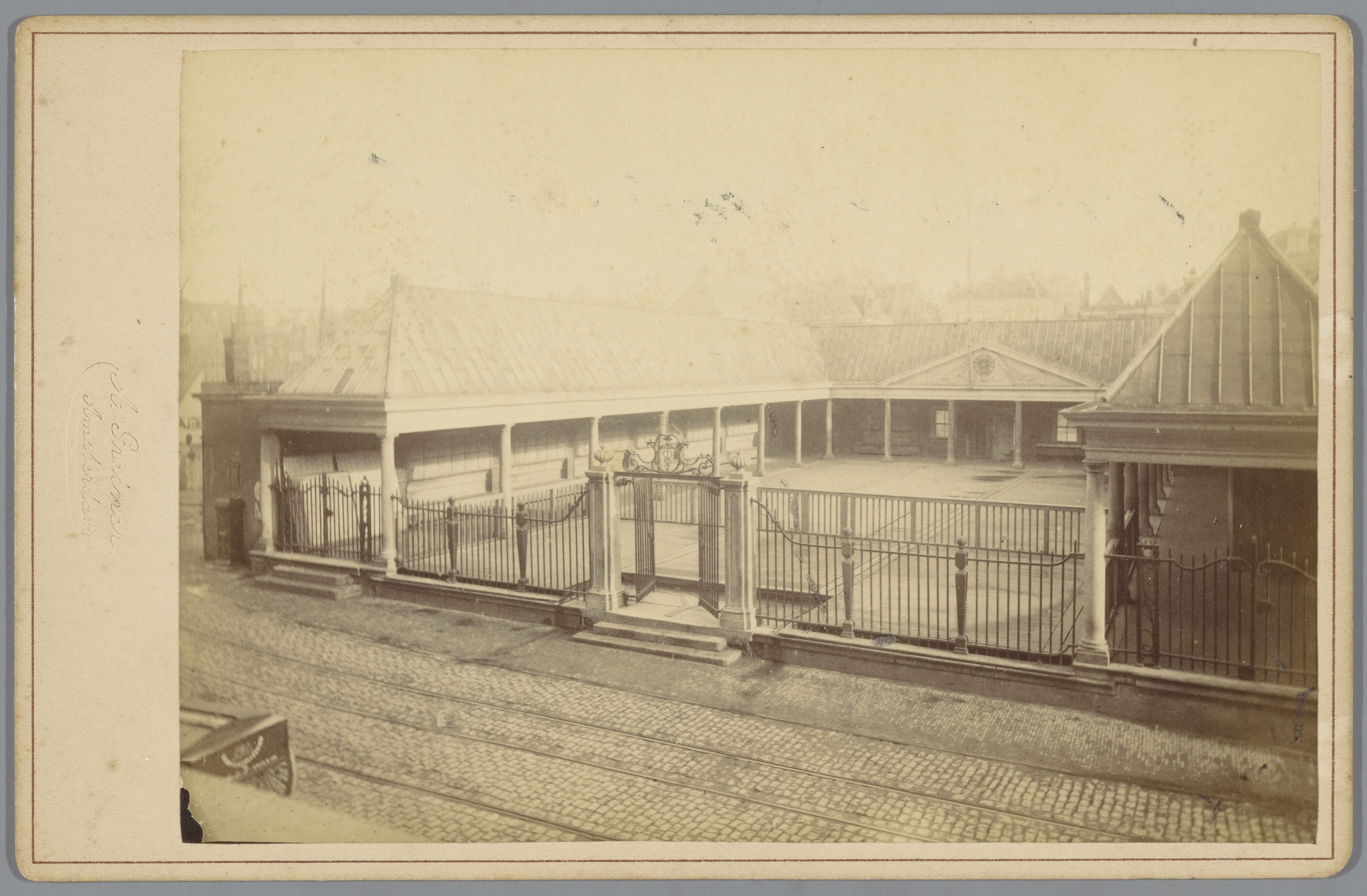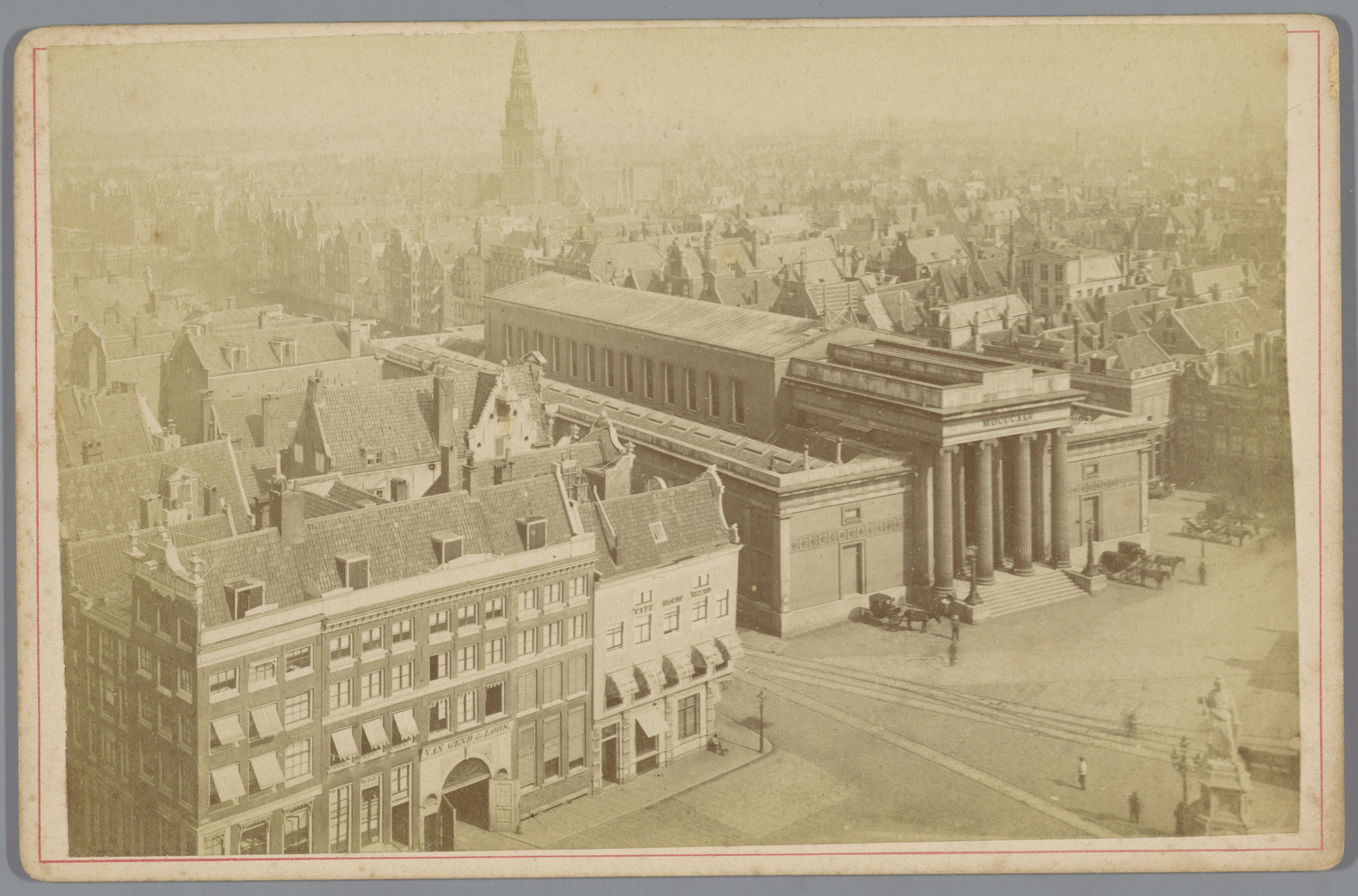 Gezicht op de Beurs van Zocher op de Dam in Amsterdam