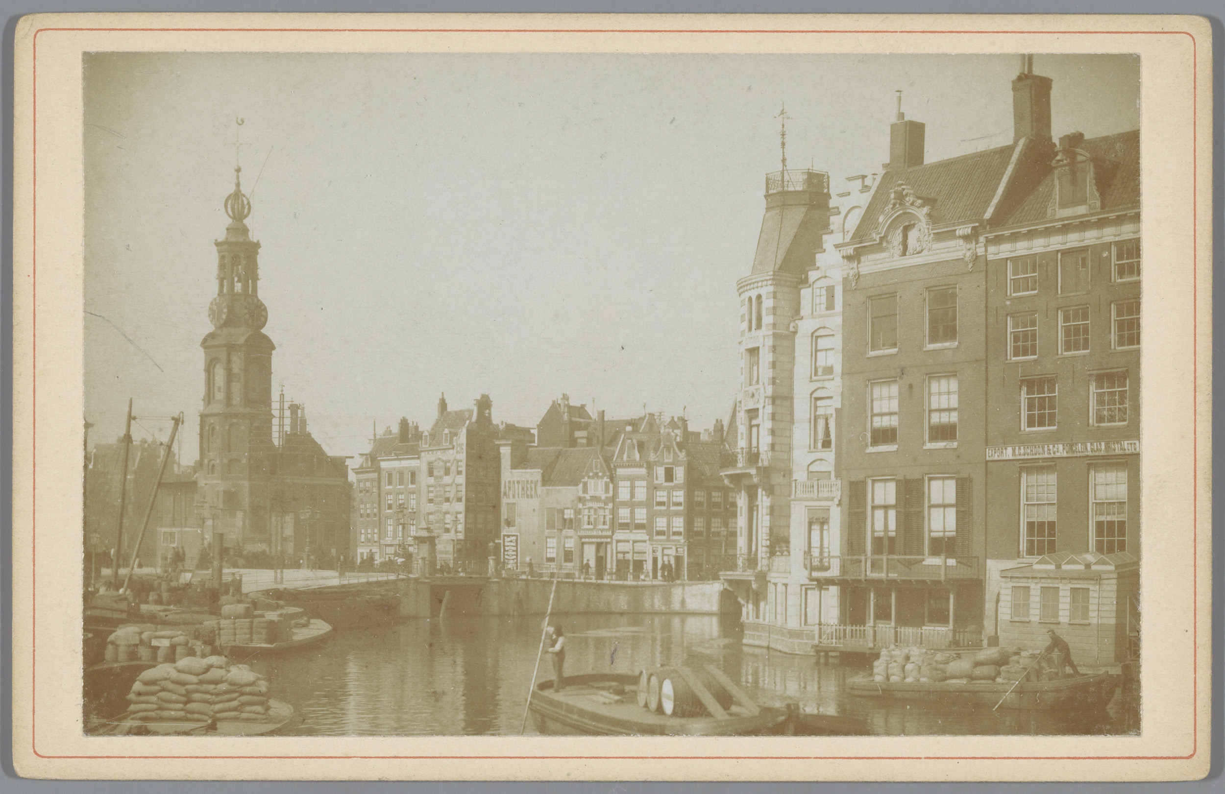 Gezicht op de Amstel in Amsterdam, met links de Munt...