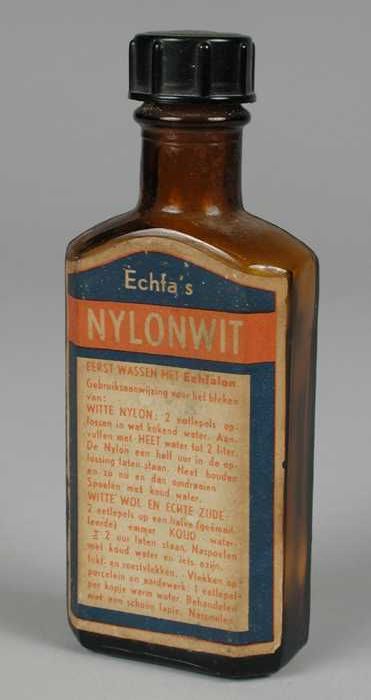 Klein bruin glazen flesje Echfa's nylonwit, blauw, o...