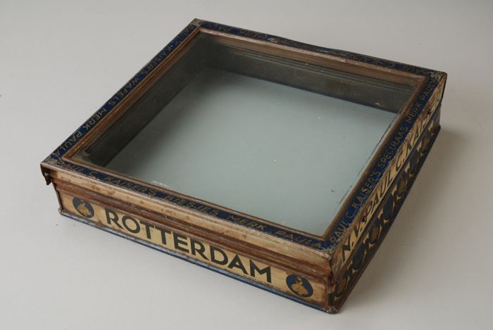 Rechthoekig blik met scharnierend glazen deksel, "N....